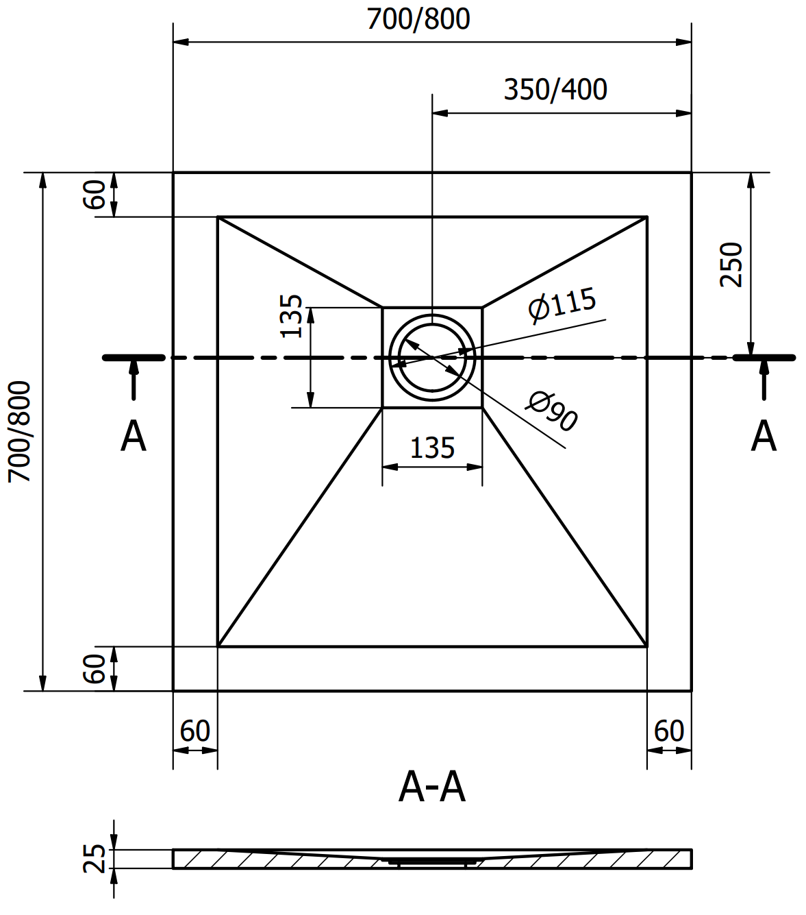 Il piatto doccia è stato progettato in modo che l'acqua possa defluire liberamente verso lo scarico. Garantisce un rapido ed efficiente drenaggio dell'acqua dalla superficie del piatto doccia, prevenendo la formazione di pozzanghere e l'allagamento del bagno.