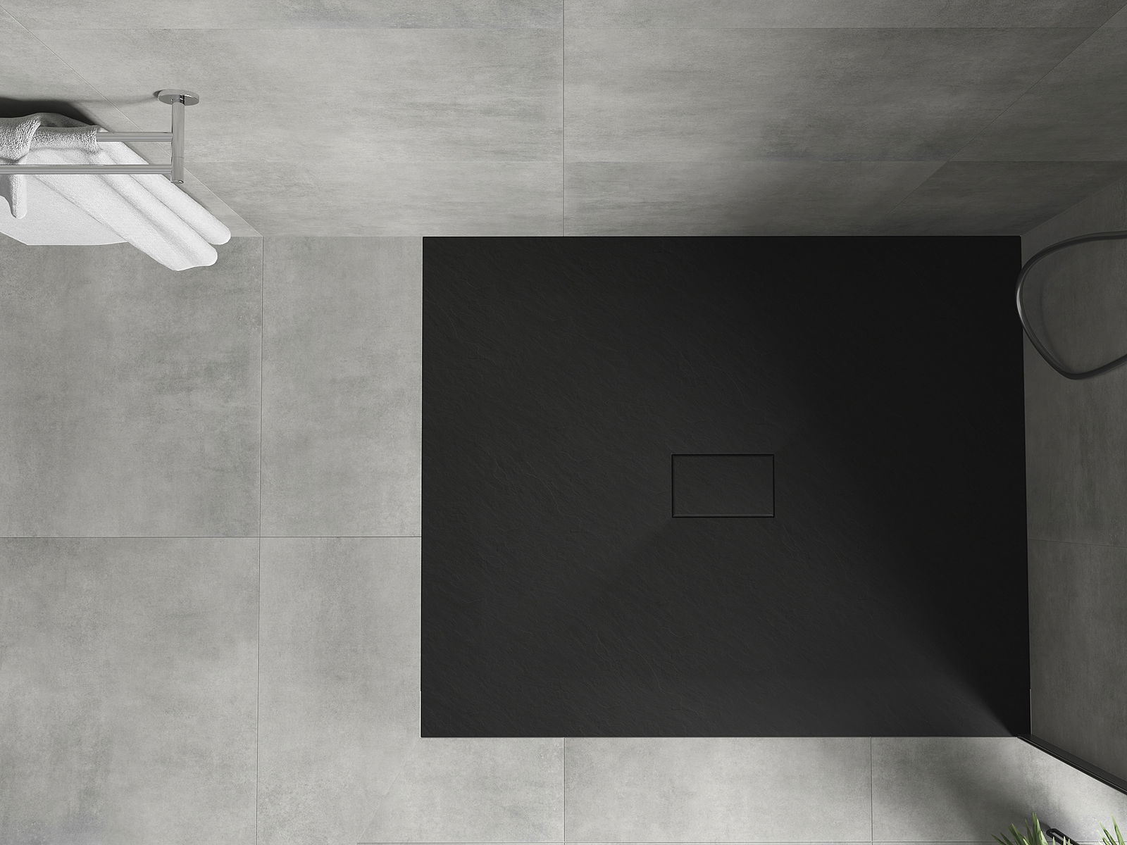 La superficie del piatto doccia con la sua struttura ricorda la pietra. Costituisce una combinazione eccezionale di aspetto naturale e design moderno degli interni. Aggiunge carattere, sottolinea l'estetica e l'eleganza dell'arredamento del bagno e affascina con la sua forma.