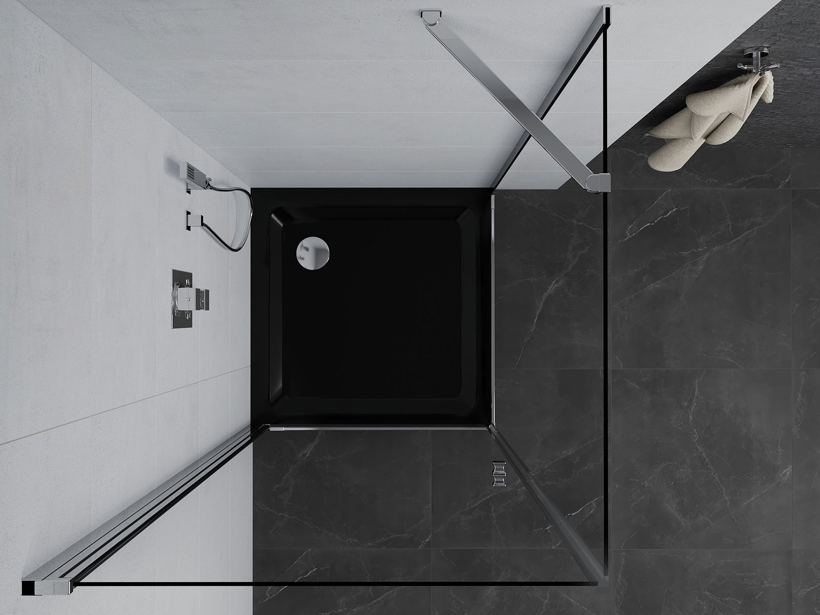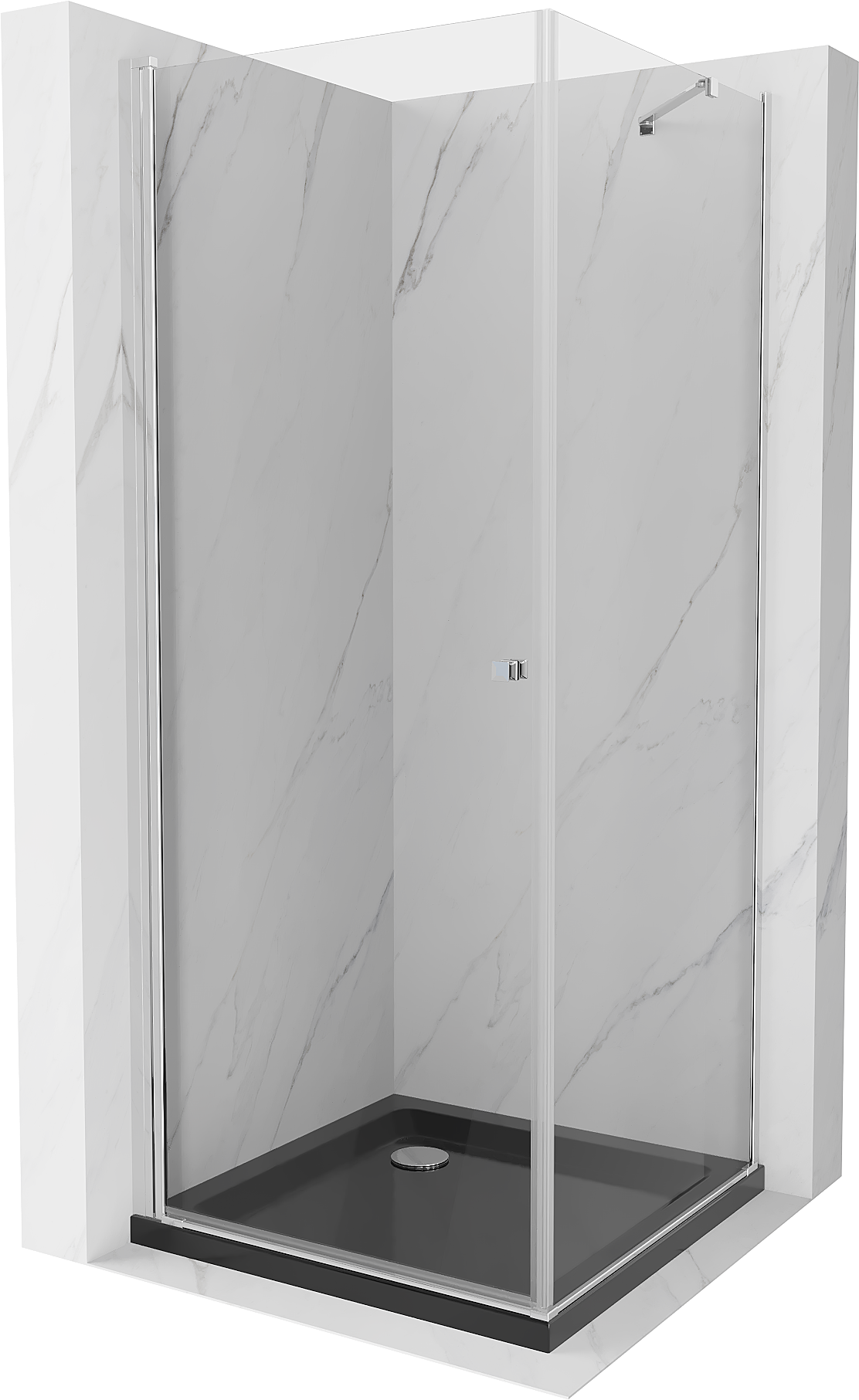 Mexen Pretoria cabina doccia battente 70 x 70 cm, trasparente, cromato + piatto Flat, nero - 852-070-070-01-00-4070
