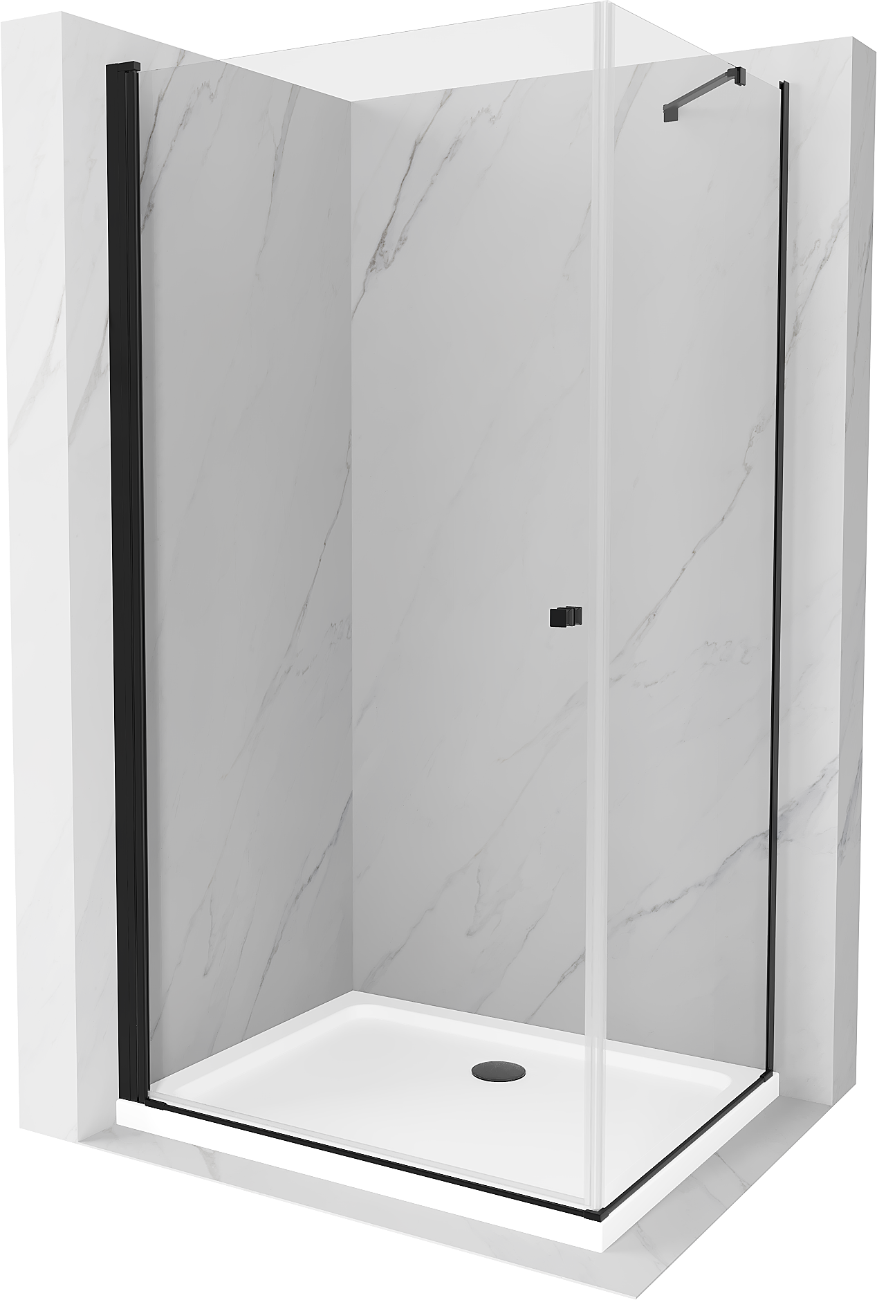 Mexen Pretoria cabina doccia a battente 80 x 70 cm, trasparente, nera + piatto doccia Flat - 852-080-070-70-00-4010B