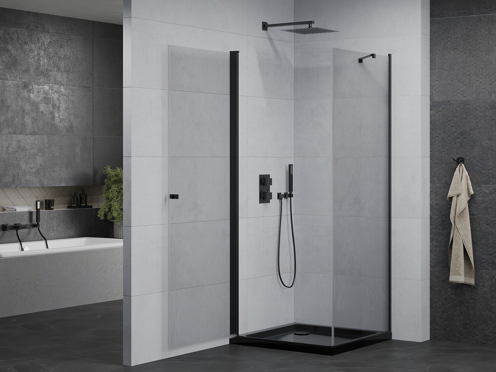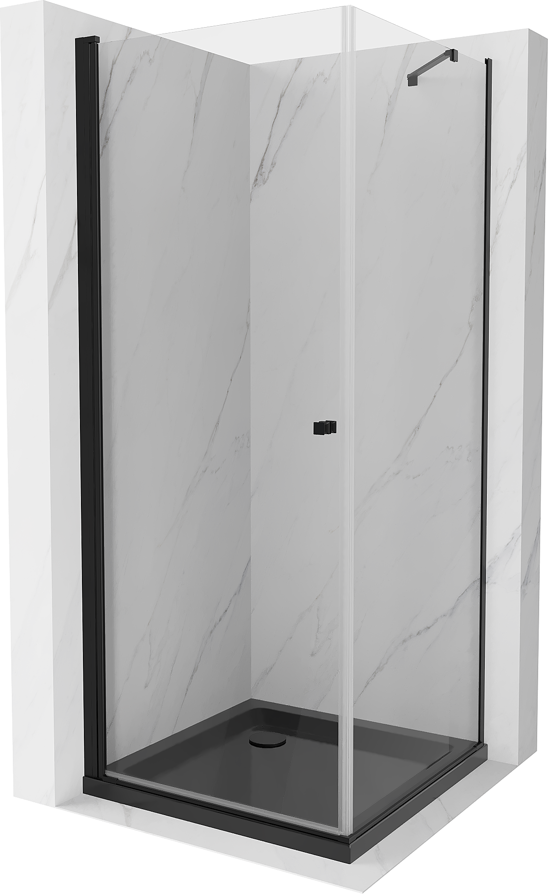 Mexen Pretoria cabina doccia a battente 70 x 70 cm, trasparente, nera + piatto Flat, nero - 852-070-070-70-00-4070B