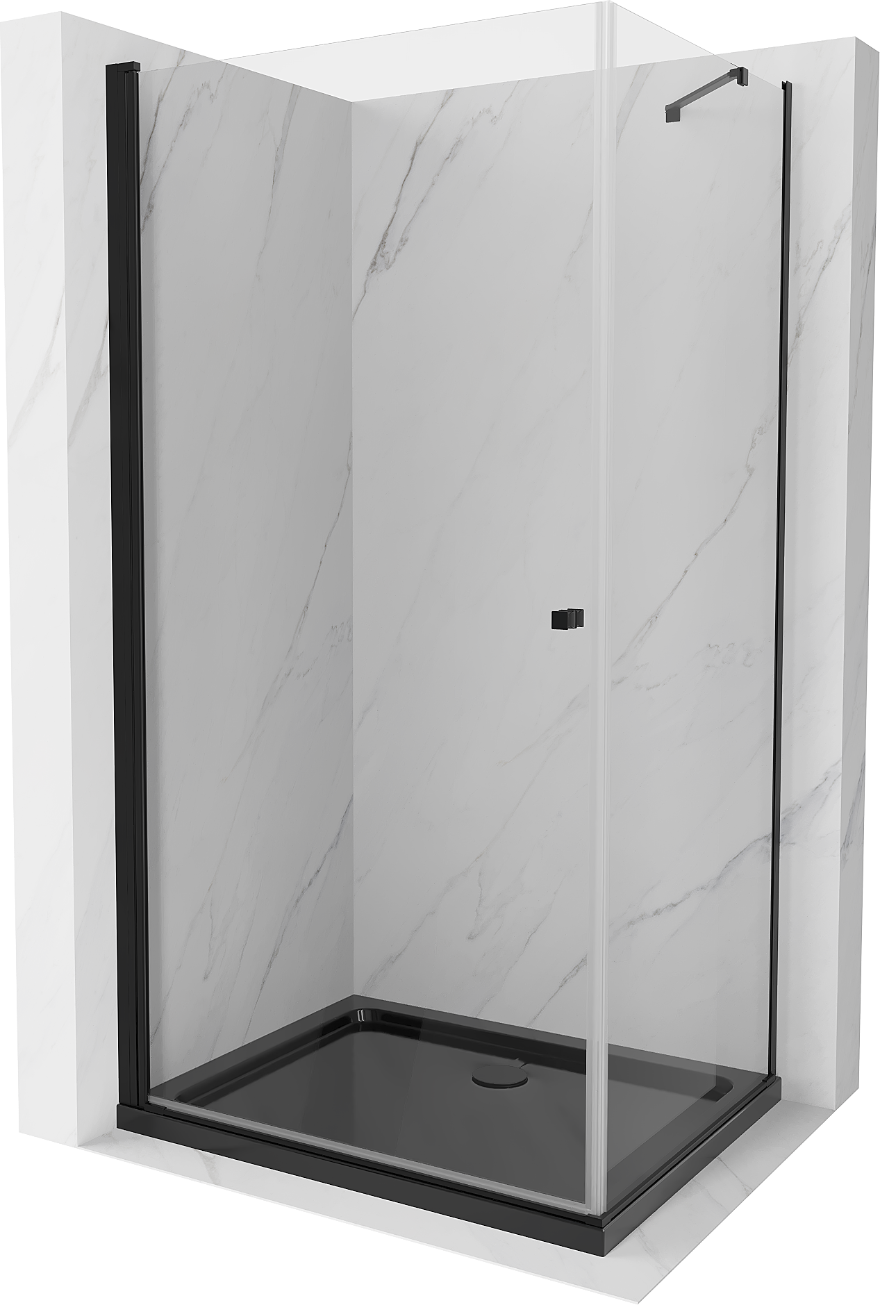 Mexen Pretoria cabina doccia battente 80 x 120 cm, trasparente, nera + piatto doccia Flat, nero - 852-080-120-70-00-4070B