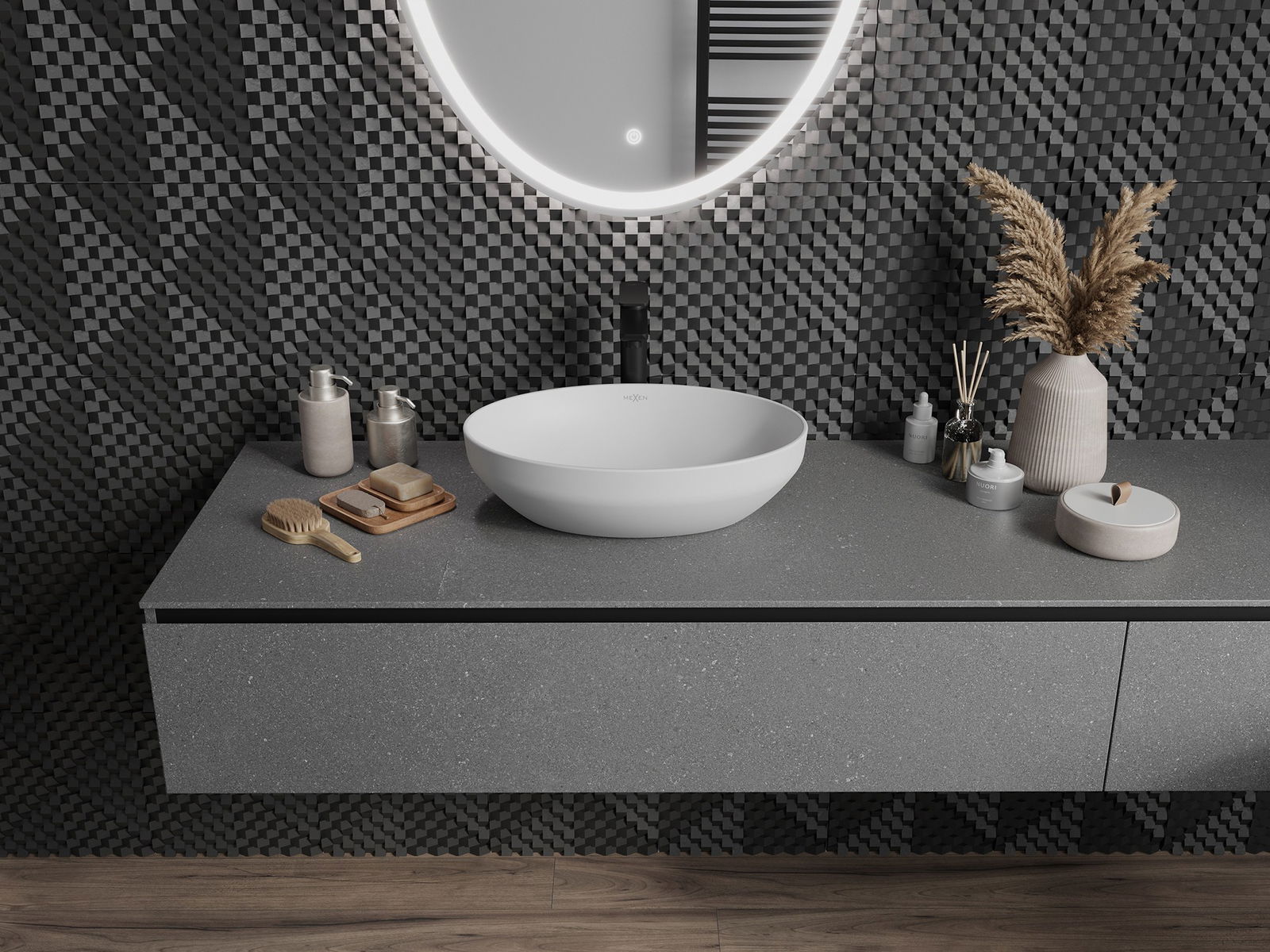 La superficie opaca della ceramica sottolinea perfettamente il carattere del colore del prodotto, conferendogli una finitura eccezionale e distintiva. La struttura sottile della ceramica opaca apporta eleganza al bagno, creando uno spazio estetico.