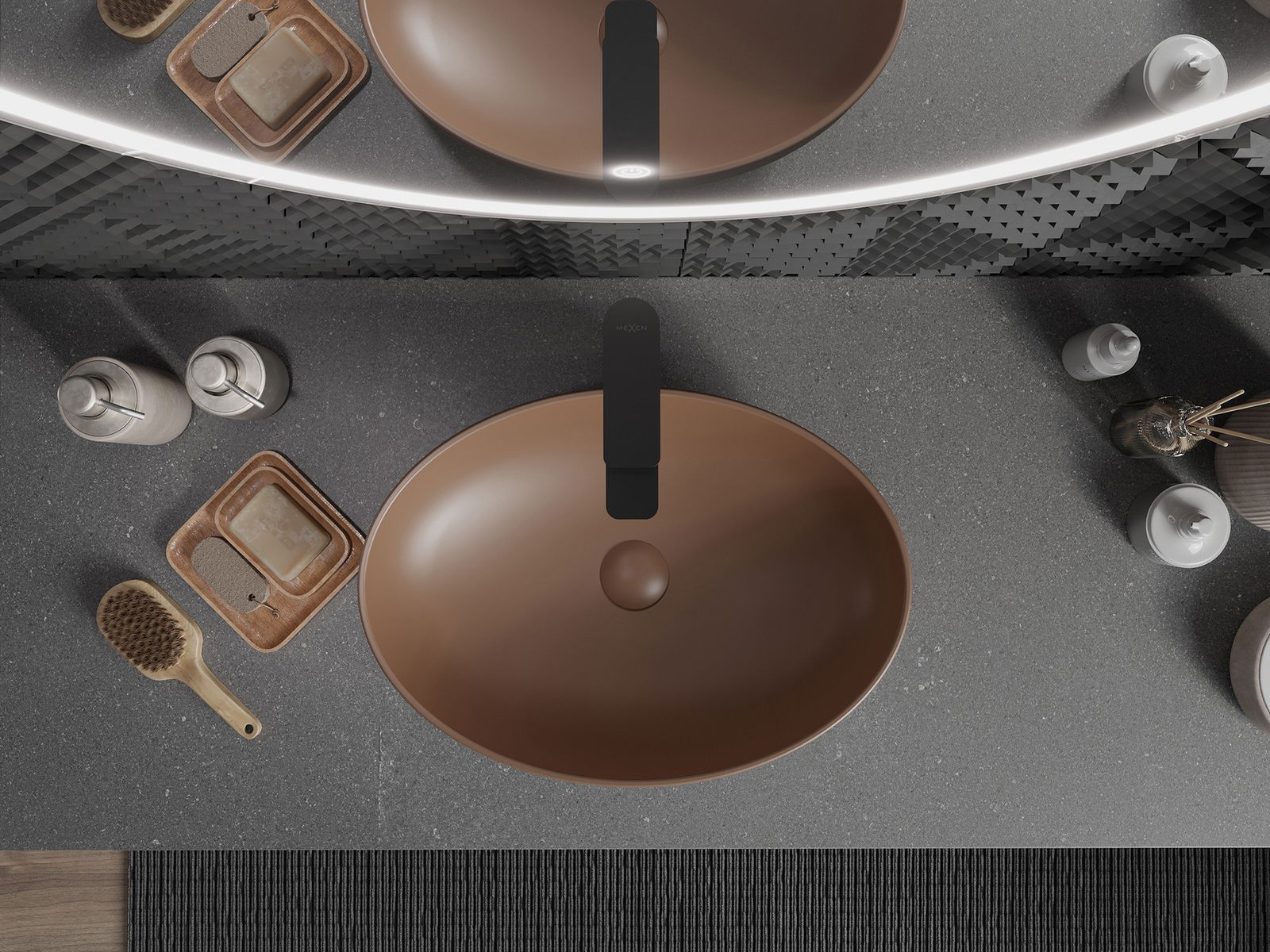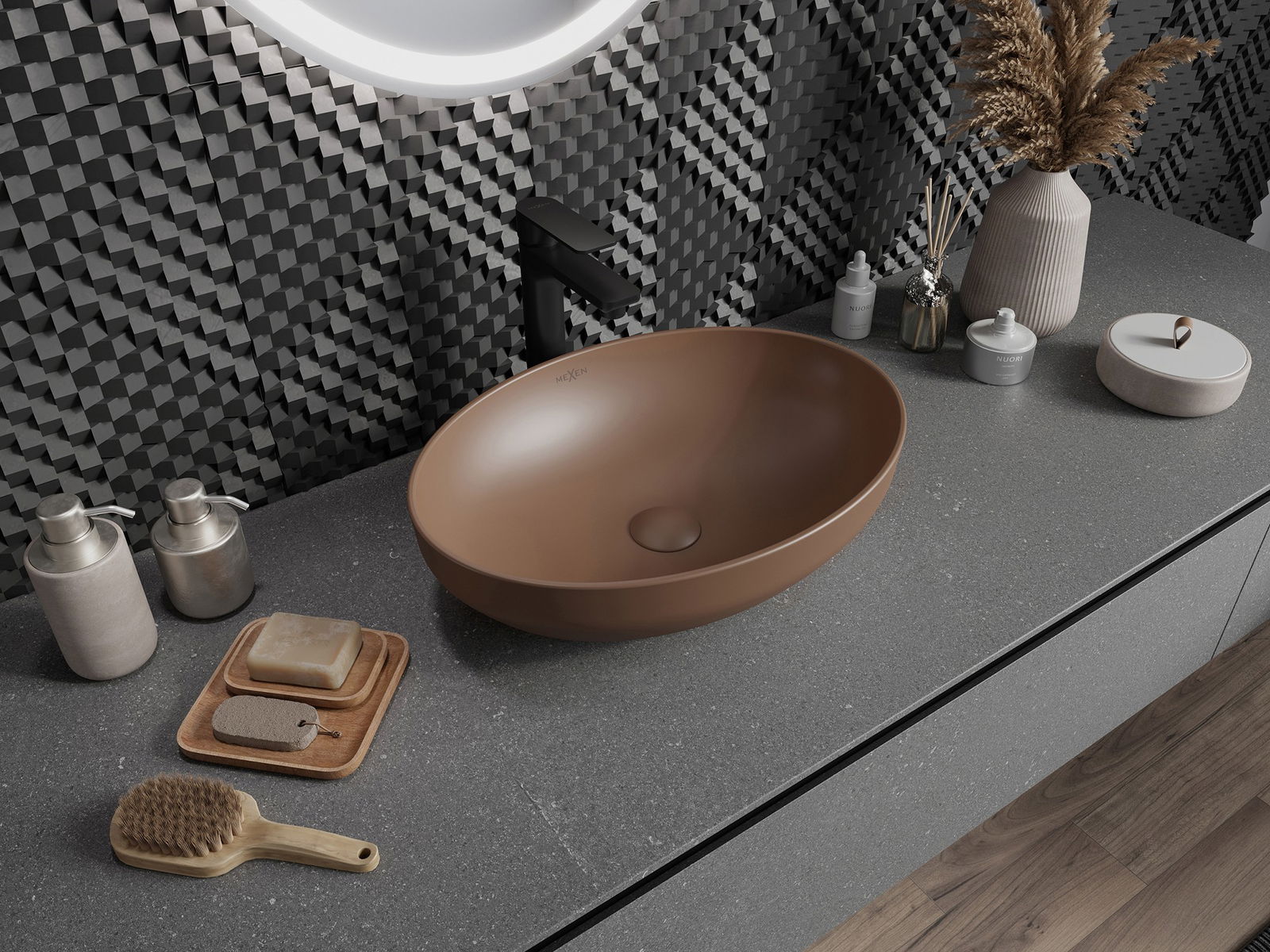 La superficie opaca della ceramica sottolinea perfettamente il carattere del colore del prodotto, conferendogli una finitura eccezionale e distintiva. La struttura sottile della ceramica opaca apporta eleganza al bagno, creando uno spazio estetico.