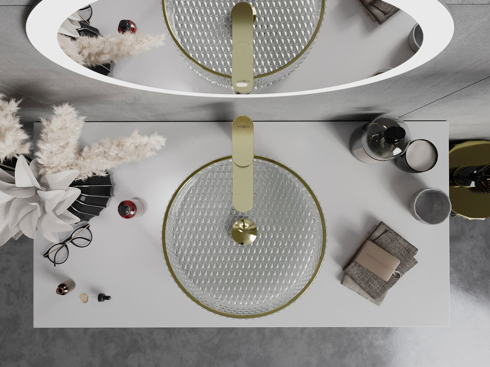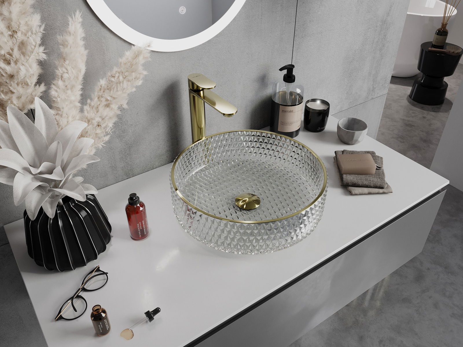 Mexen Aura lavabo da appoggio in vetro 39 x 39 cm, trasparente/oro - 24013905