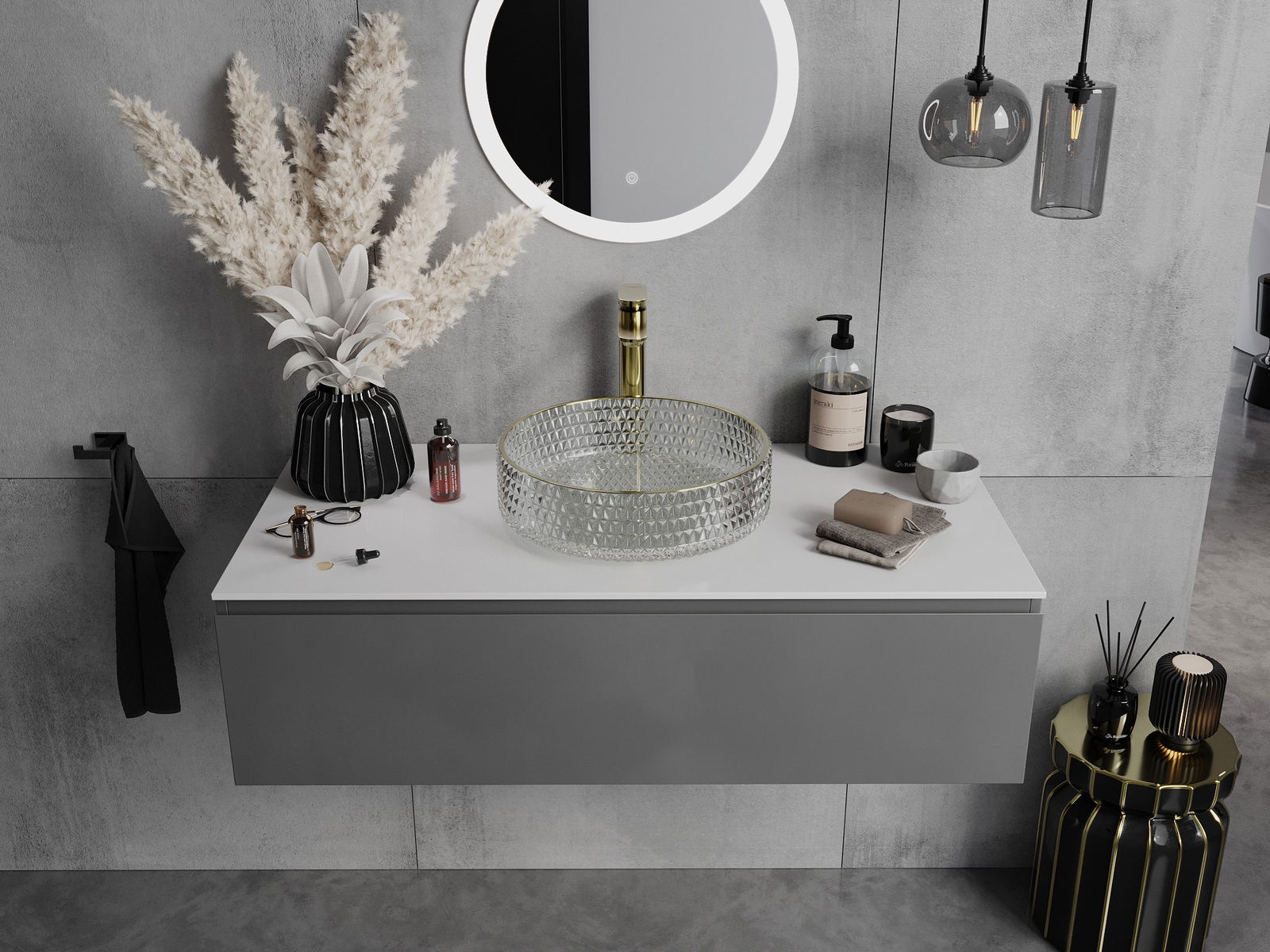 Il lavabo da appoggio Mexen Aura 39 x 39 cm combina eleganza e funzionalità. Realizzato in vetro nei colori trasparente e oro, si adatta perfettamente agli ambienti moderni. La sua forma rotonda e l'altezza di 11,5 cm garantiscono comfort d'uso, mentre l'assenza di fori per rubinetti e troppopieno offre libertà nella scelta della rubinetteria. Ideale per bagni eleganti, questo lavabo non è solo estetico, ma anche facile da pulire, rendendolo una scelta pratica per ogni casa.