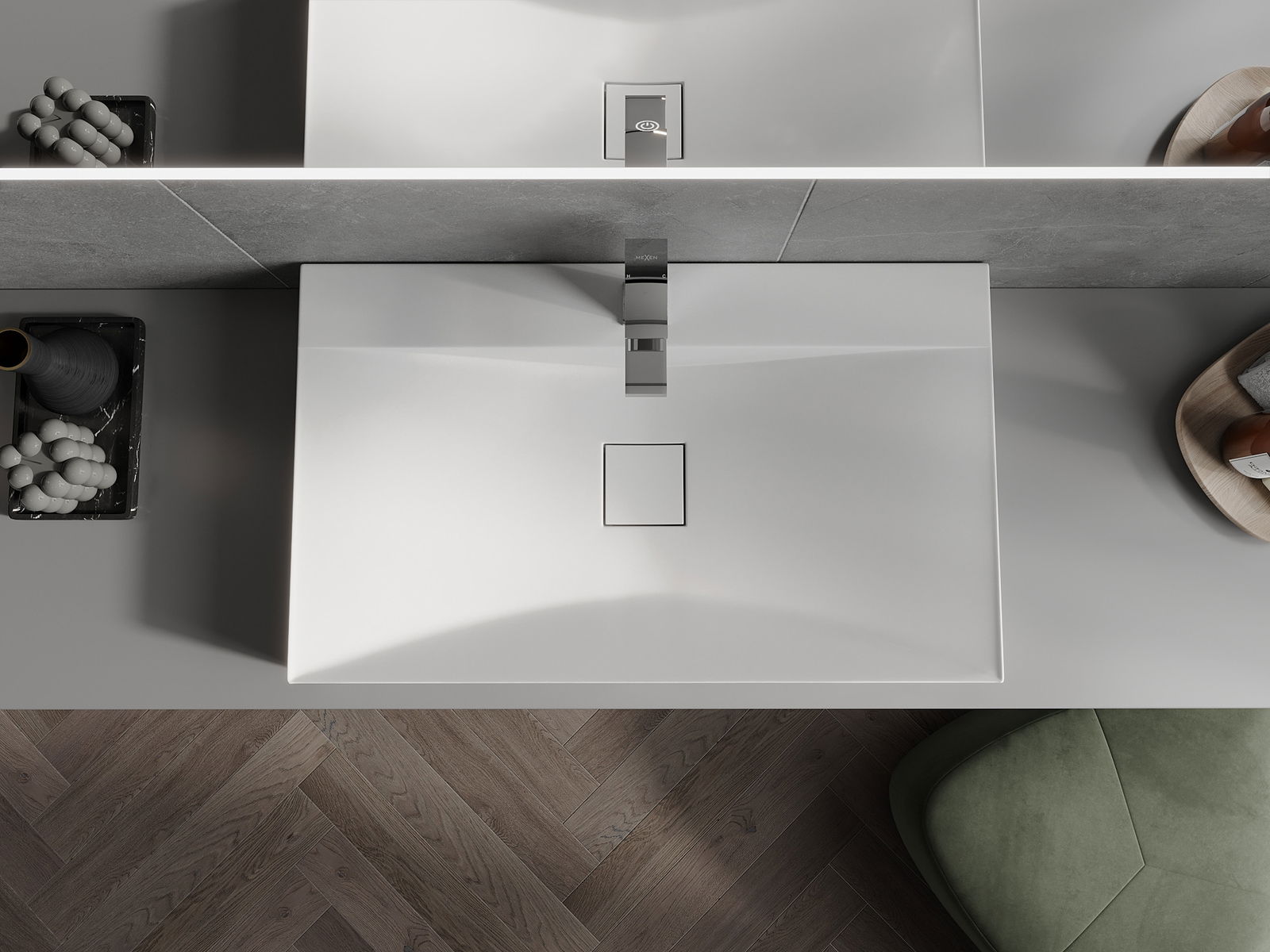 Il lavandino ha un foro dove possiamo installare il rubinetto. Ciò consente di risparmiare spazio prezioso nel bagno e di accentuarne l'estetica. Questa soluzione permette anche di mantenere più facilmente la pulizia intorno al lavandino.