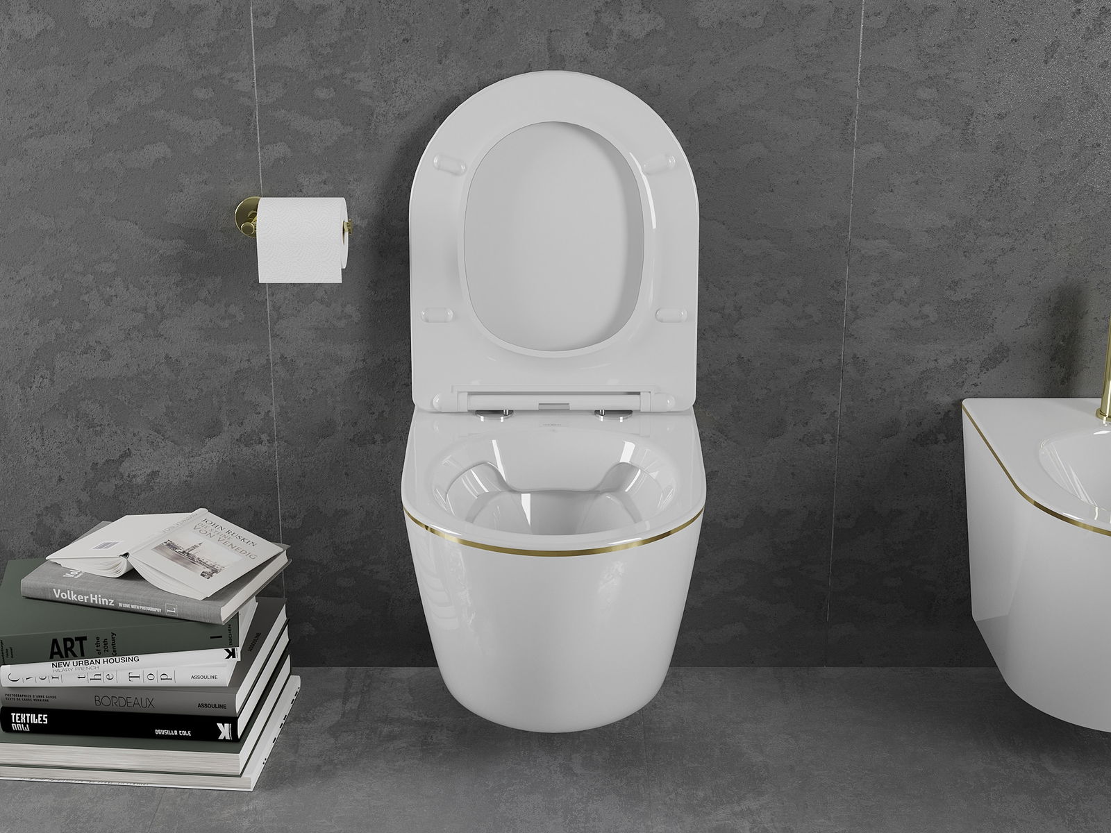 Tavola sottile con una forma eccezionalmente ergonomica e un aspetto estremamente snello. Il design si adatta perfettamente all'interno moderno del bagno, dando un'impressione di leggerezza. Ottima scelta per allestimenti minimalisti.