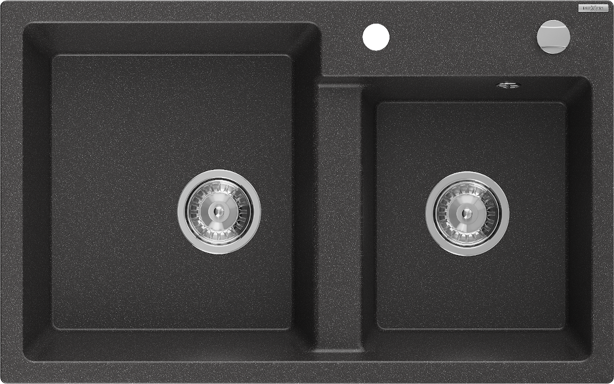 Mexen Tomas lavello in granito a 2 vasche 800 x 500 mm, nero macchiato, sifone cromato - 6516802000-76