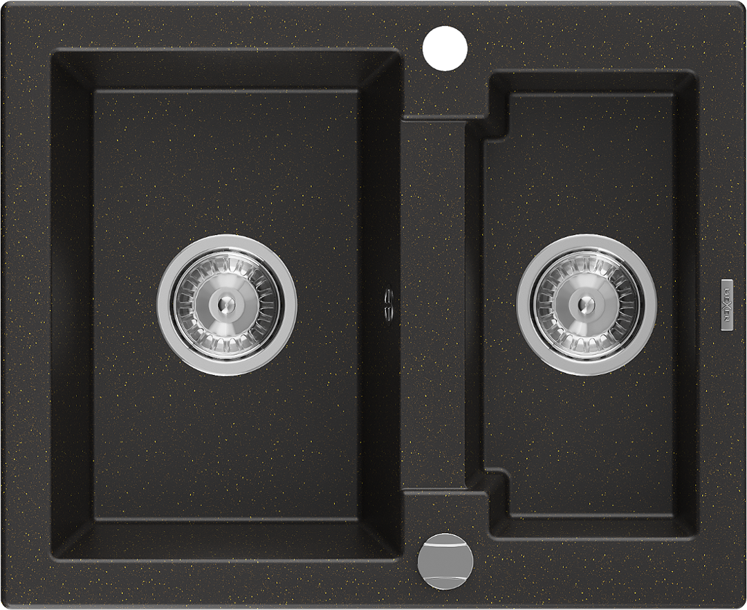 Mexen Carlos lavello in granito da 1,5 vasche 582 x 475 mm, nero/oro metallizzato, sifone cromato - 6518581500-75