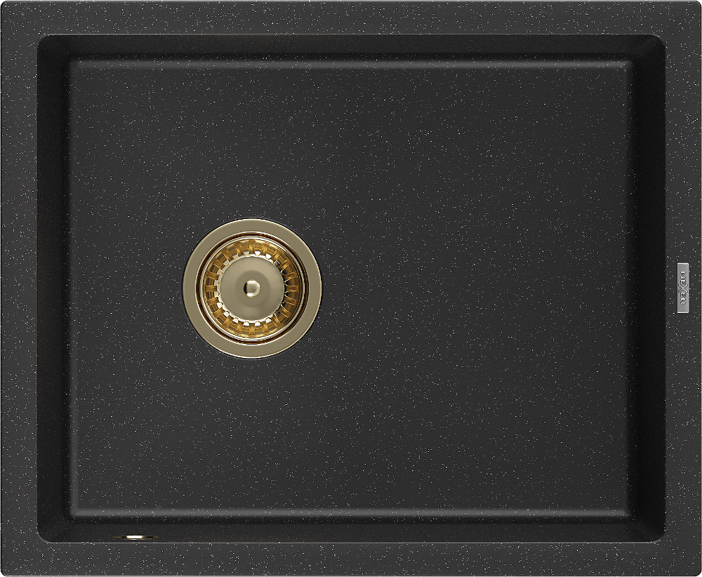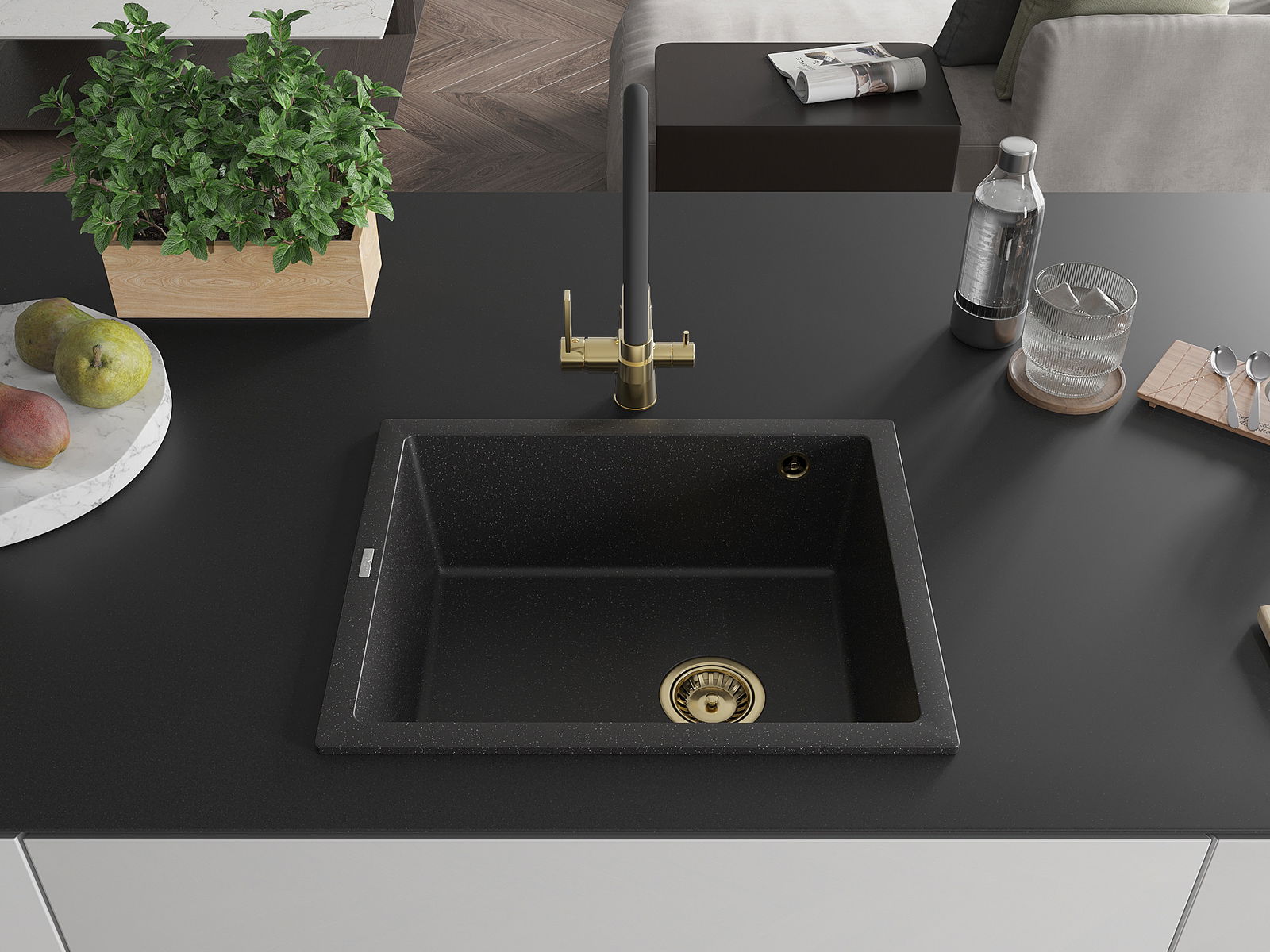 Mexen Pedro lavello in granito a 1 vasca 560 x 460 mm, nero/argento metallico, sifone dorato - 6508561000-73-G