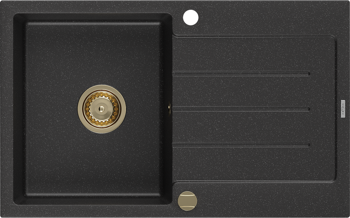 Mexen Bruno lavello in granito 1-vasca con gocciolatoio 795 x 495 mm, nero/argento metallico, sifone dorato - 6513791010-73-G