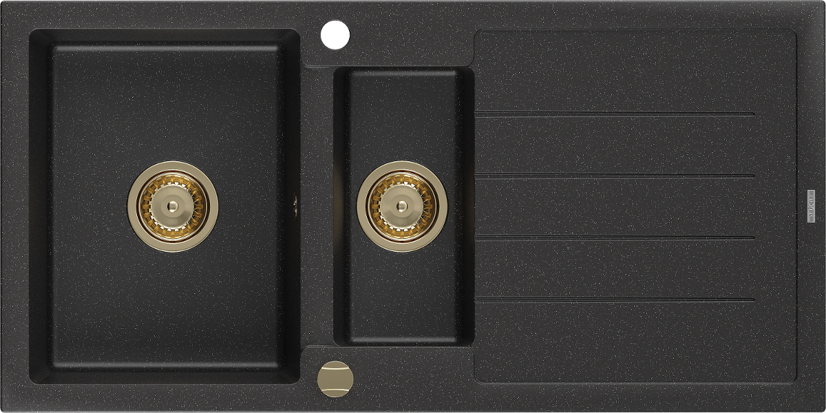 Mexen Andres lavello in granito 1,5 vasche con gocciolatoio 1000 x 500 mm nero/argento metallico, sifone dorato