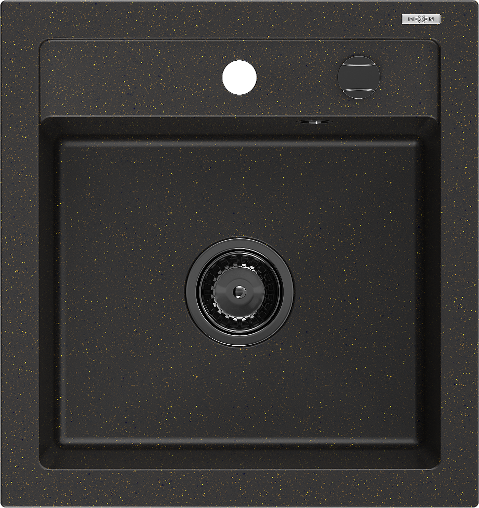 Mexen Vito lavello in granito a 1 vasca 520 x 490 mm, nero/oro metallizzato, sifone nero - 6503521000-75-B