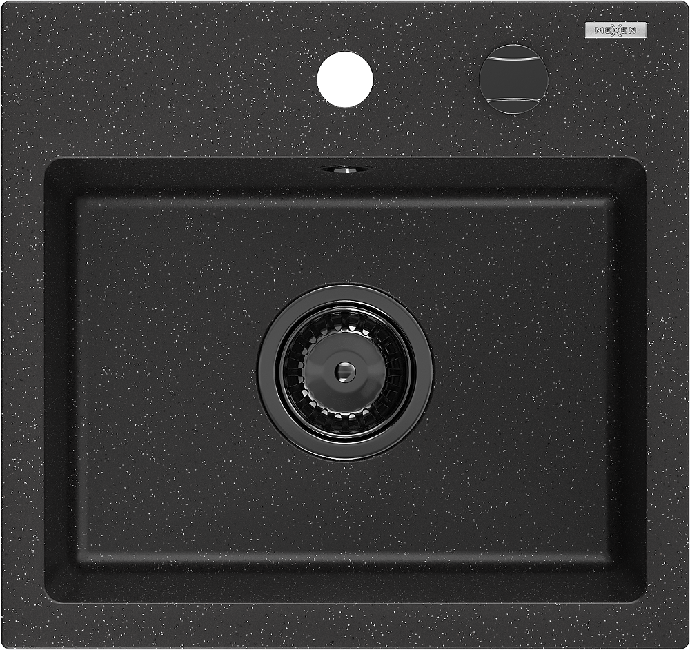 Mexen Milo lavello in granito 1 vasca 435 x 410 mm, nero/argento metallizzato, sifone nero - 6505441000-73-B