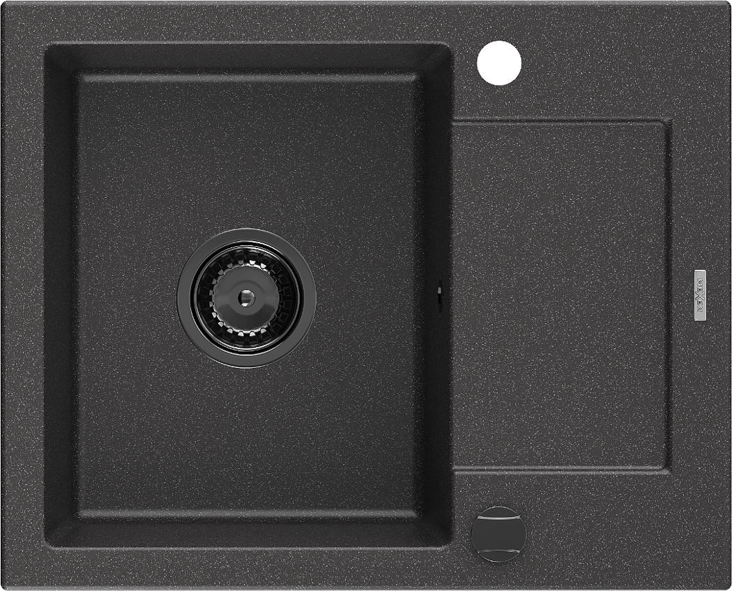 Mexen Enzo lavello in granito a 1 vasca con scolapiatti 576 x 465 mm, nero maculato, sifone nero - 6506571005-76-B