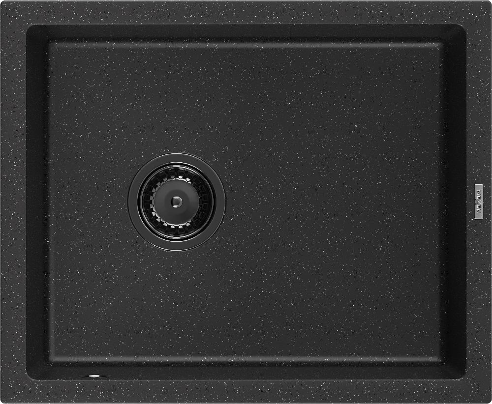 Mexen Pedro lavello in granito 1-vasca 560 x 460 mm, nero/argento metallico, sifone nero - 6508561000-73-B