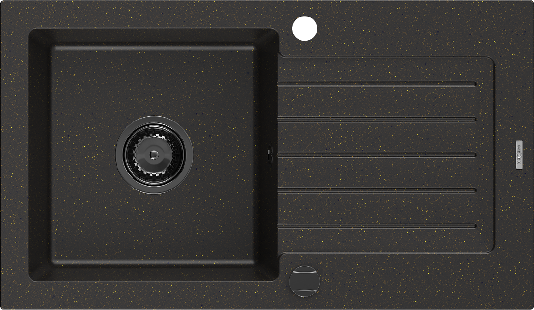 Mexen Pablo lavello in granito 1-vasca con gocciolatoio 752 x 436 mm, nero/oro metallico, sifone nero - 6510751010-75-B