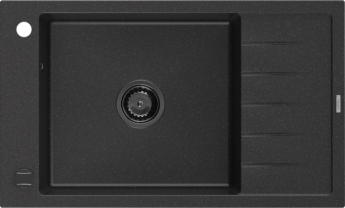 Mexen Elias lavello in granito 1-vasca con sgocciolatoio 795 x 480 mm, nero/argento metallizzato, sifone nero - 6511791005-73-B