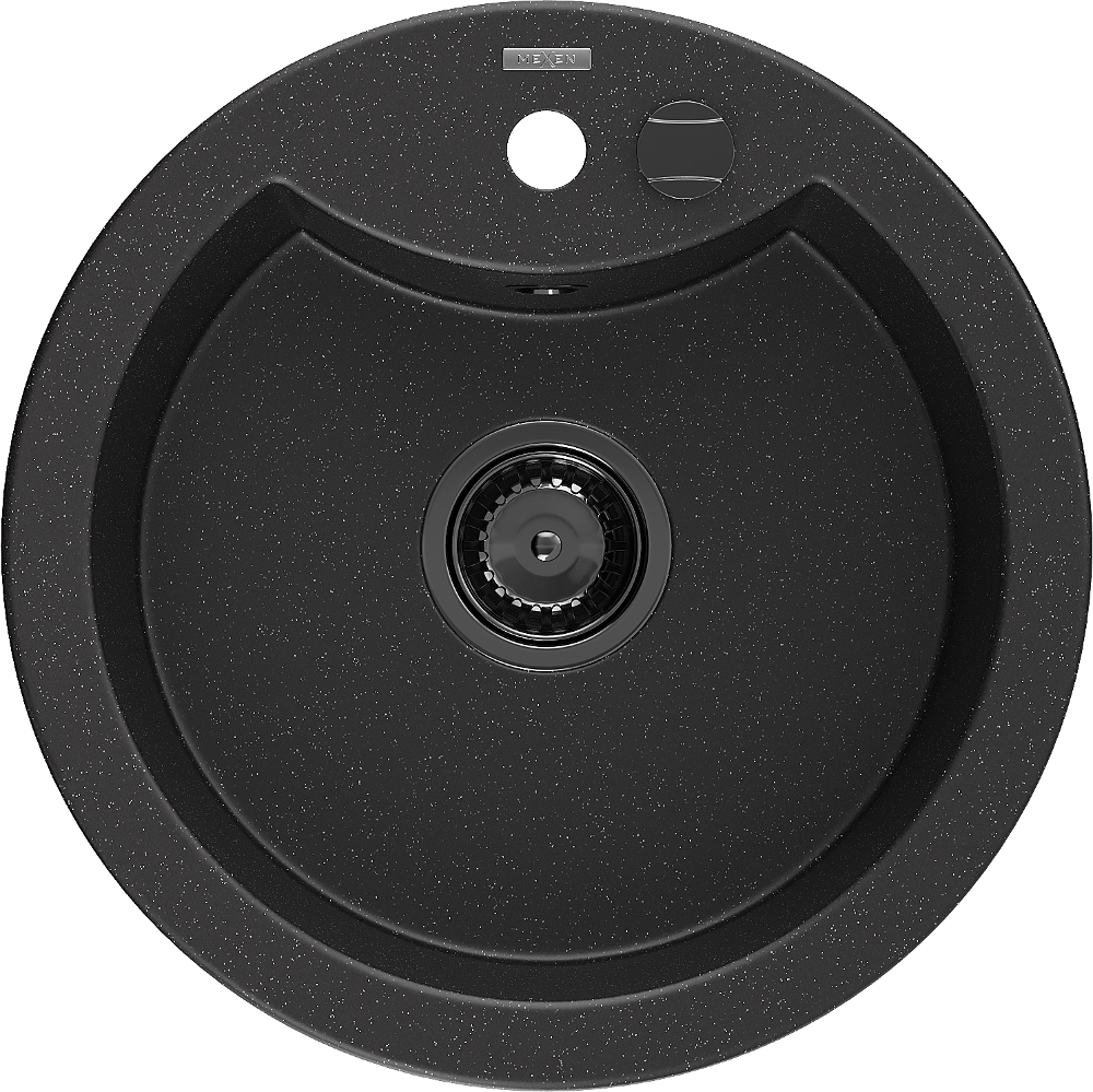 Mexen Diego lavello da cucina in granito a 1 vasca 488 x 480 mm, nero/argento metallizzato, sifone nero - 6512481000-73-B