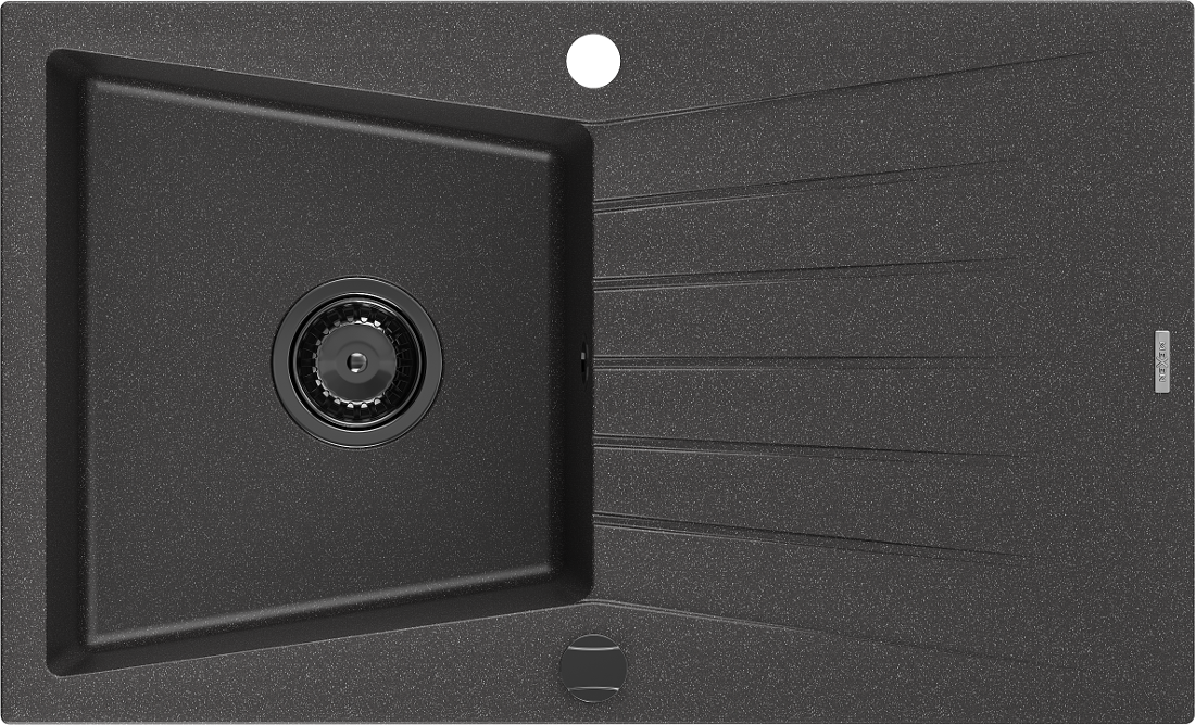 Mexen Cesar lavello in granito a 1 vasca con sgocciolatoio 775 x 470 mm, nero maculato, sifone nero - 6514771010-76-B