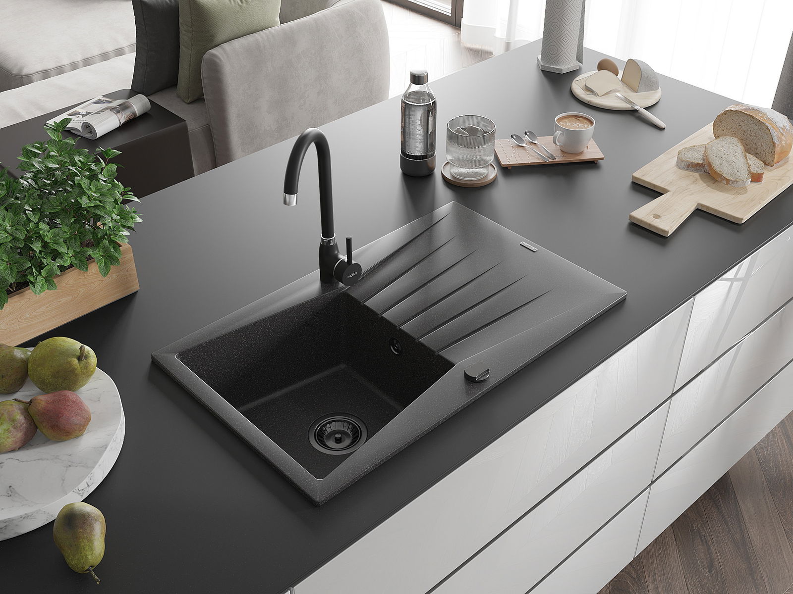 Il lavello è realizzato in granito di alta qualità. Rappresenta un complemento elegante e, soprattutto, pratico per ogni cucina, indipendentemente dal suo stile. L'alta qualità e la durata del granito garantiscono un utilizzo che dura per molti anni.