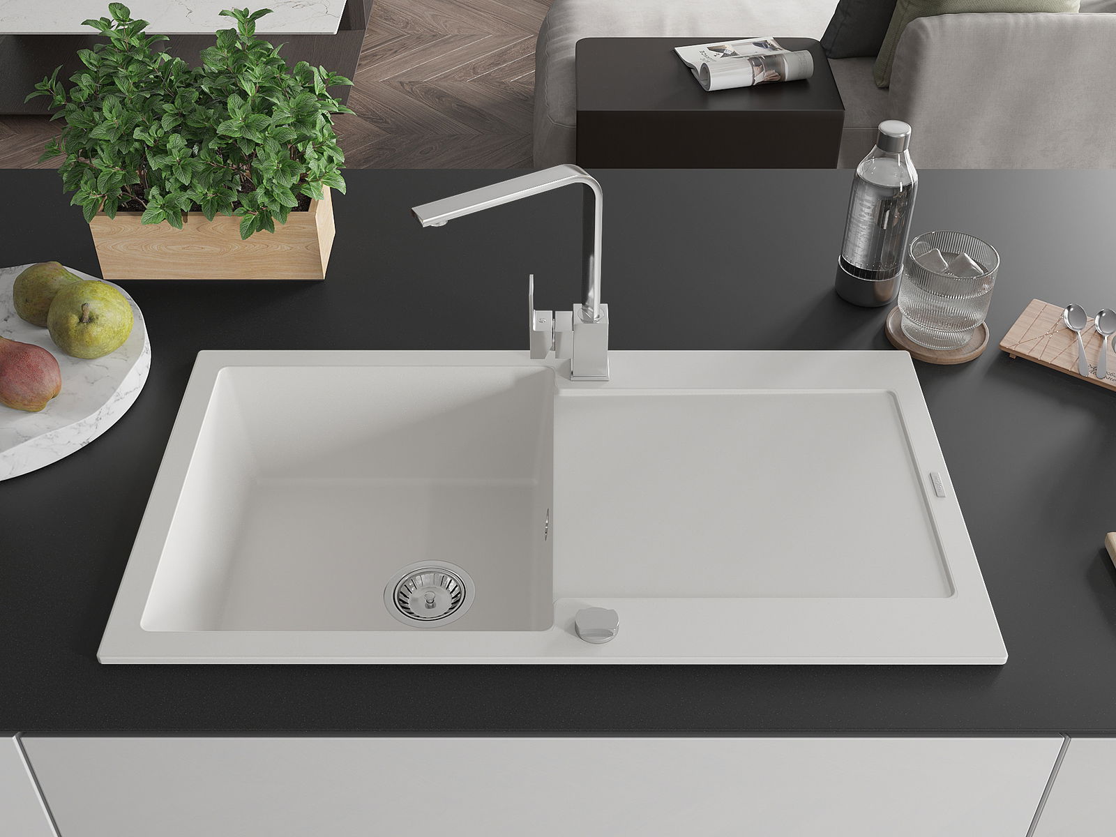 La scelta di un lavello con sgocciolatoio è una soluzione pratica che consente di riporre piatti, verdure e frutta lavati. Lo sgocciolatoio facilita la cucina quotidiana e aiuta a mantenere l'ordine in cucina.