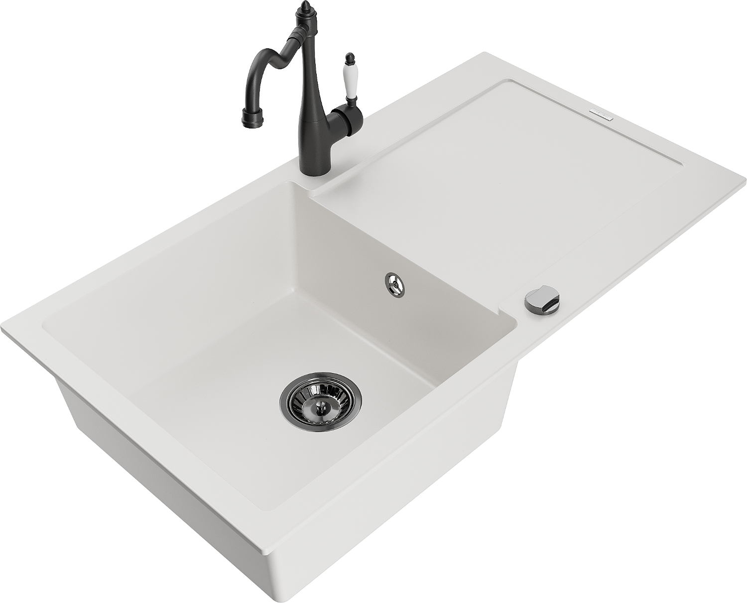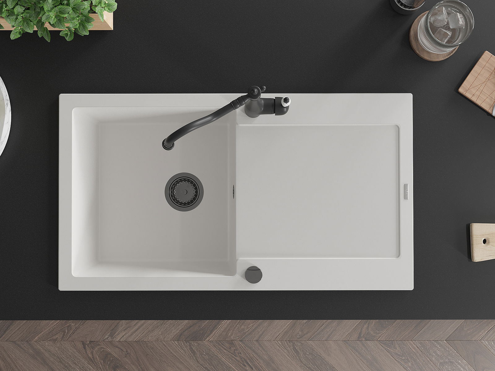Mexen Leo lavello in granito con 1 vasca con scolapiatti e rubinetto da cucina Carla, bianco - 6501-20-670700-70