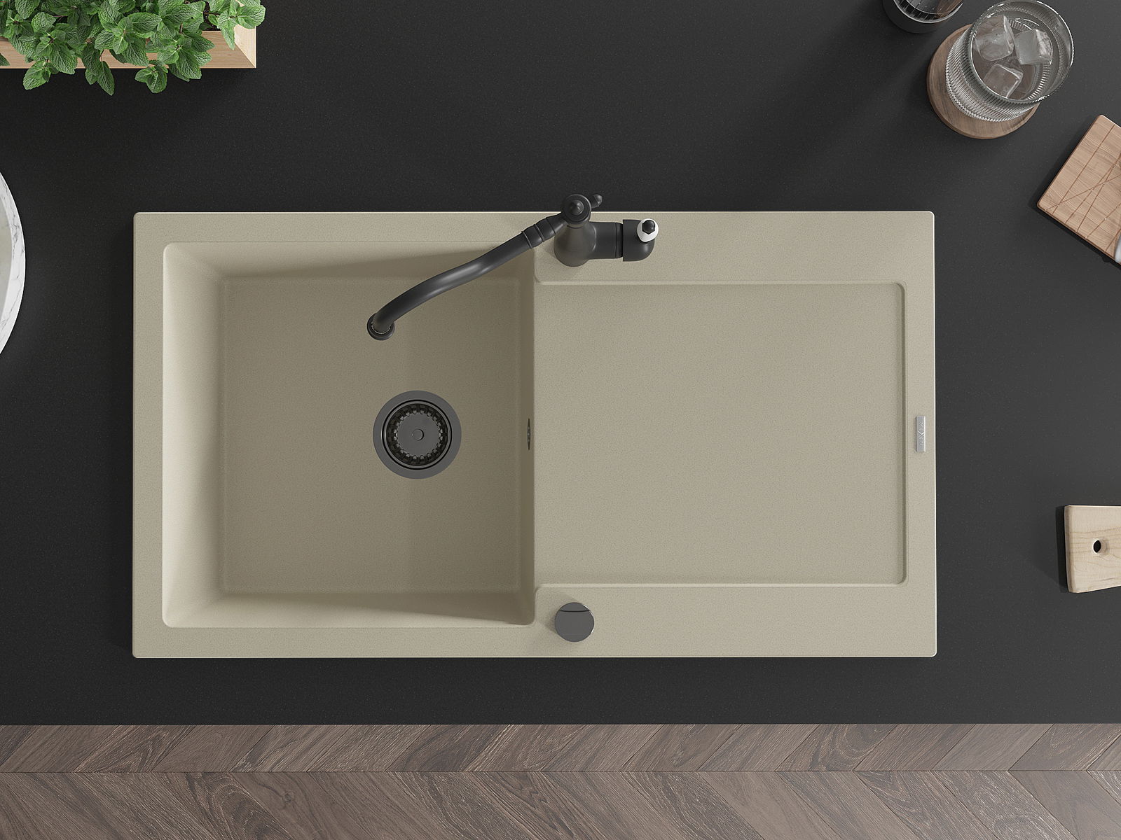 Il lavello è realizzato in granito di alta qualità. Rappresenta un complemento elegante e, soprattutto, pratico per ogni cucina, indipendentemente dal suo stile. L'alta qualità e la durata del granito garantiscono un utilizzo che dura per molti anni.