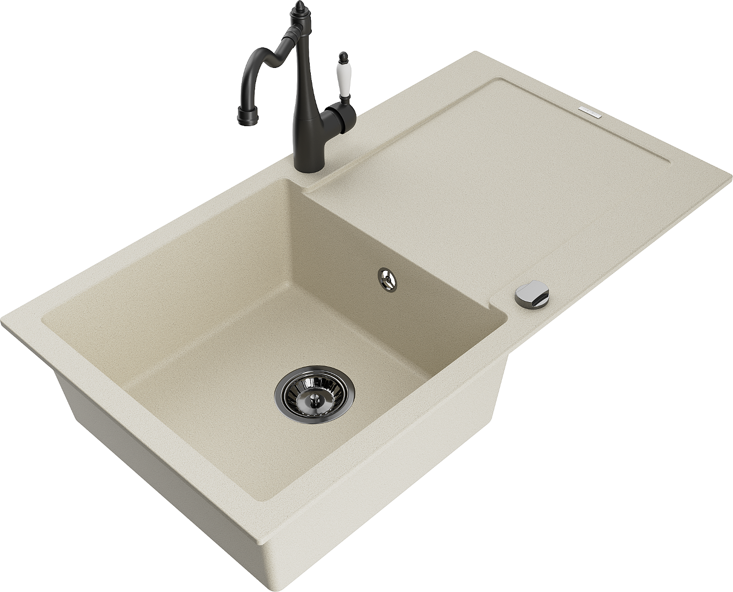 Mexen Leo lavello in granito monocamera con scolapiatti e miscelatore cucina Carla, beige - 6501-69-670700-70