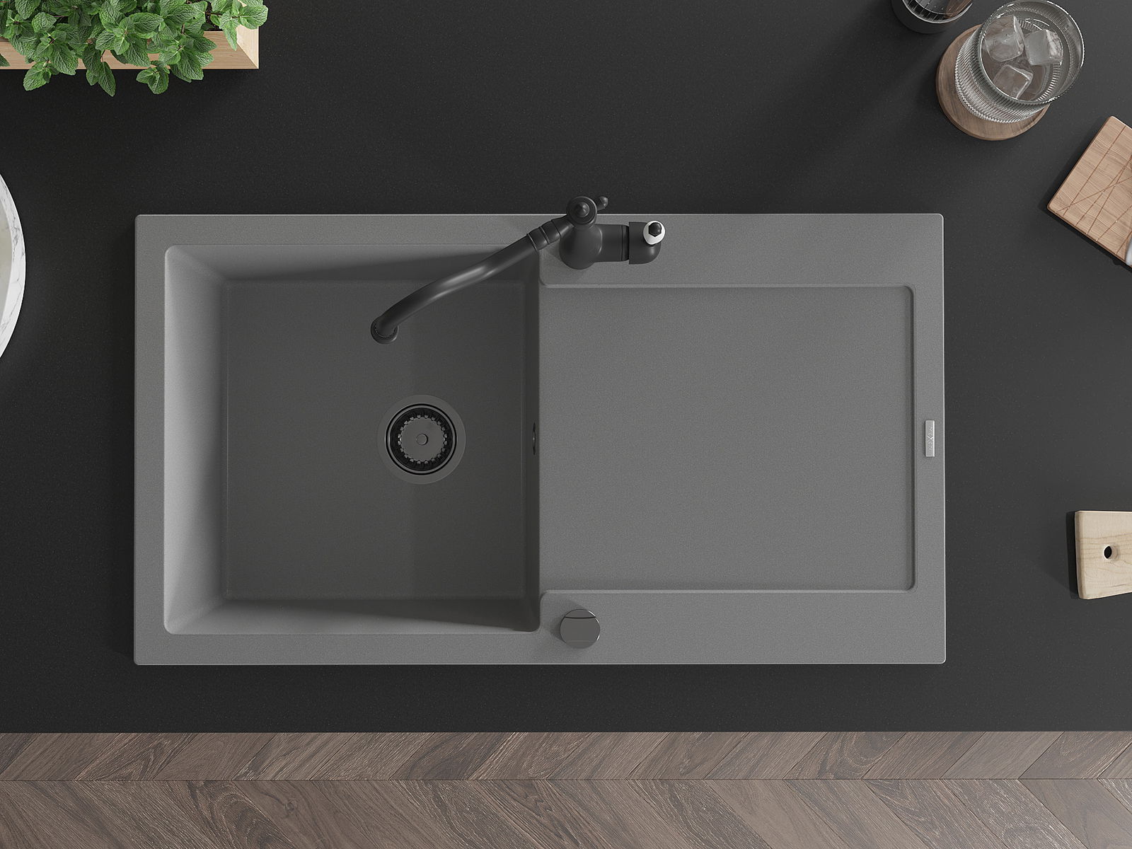 Mexen Leo lavello in granito a 1 vasca con gocciolatoio e rubinetto da cucina Carla, grigio - 6501-71-670700-70-B