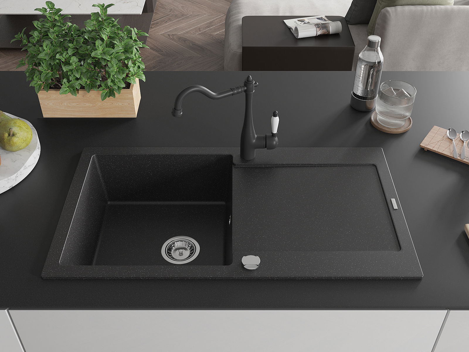 Il lavello è realizzato in granito di alta qualità. Rappresenta un complemento elegante e, soprattutto, pratico per ogni cucina, indipendentemente dal suo stile. L'alta qualità e la durata del granito garantiscono un utilizzo che dura per molti anni.