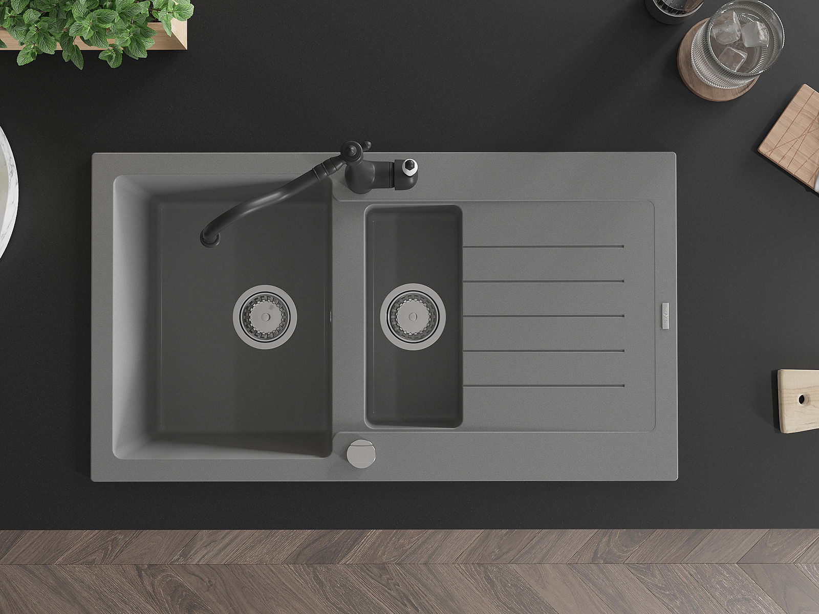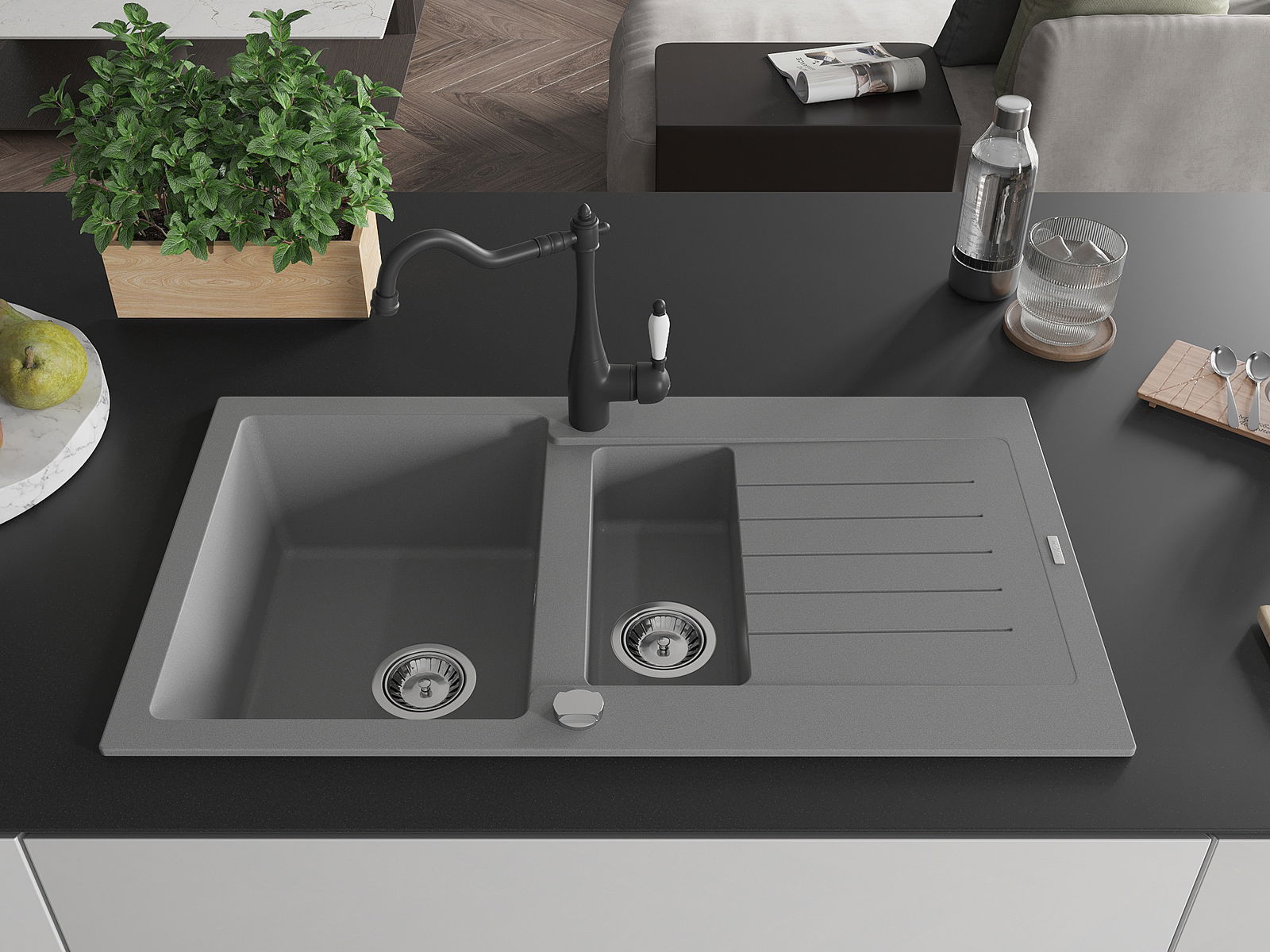 Il lavello è realizzato in granito di alta qualità. Rappresenta un complemento elegante e, soprattutto, pratico per ogni cucina, indipendentemente dal suo stile. L'alta qualità e la durata del granito garantiscono un utilizzo che dura per molti anni.