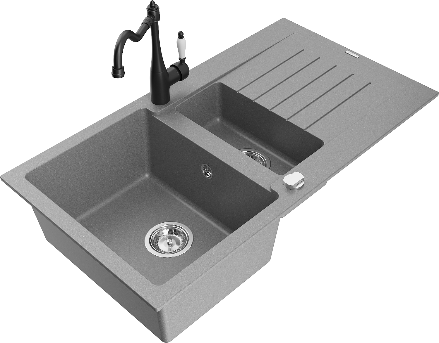 Mexen Matias lavello in granito 1,5 vasche con gocciolatoio e miscelatore cucina Carla, grigio - 6502-71-670700-70