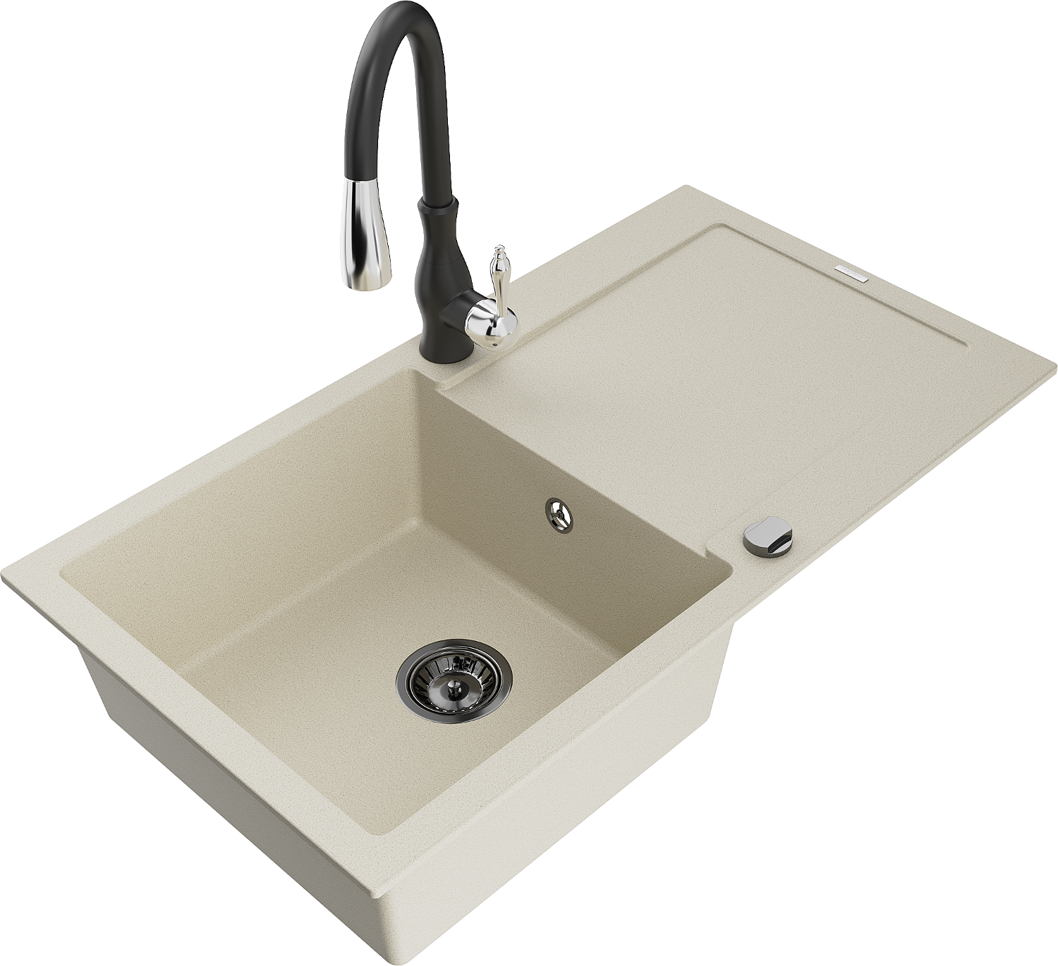 Mexen Leo lavello in granito a 1 vasca con scolapiatti e rubinetto da cucina Savita, beige - 6501-69-672601-70