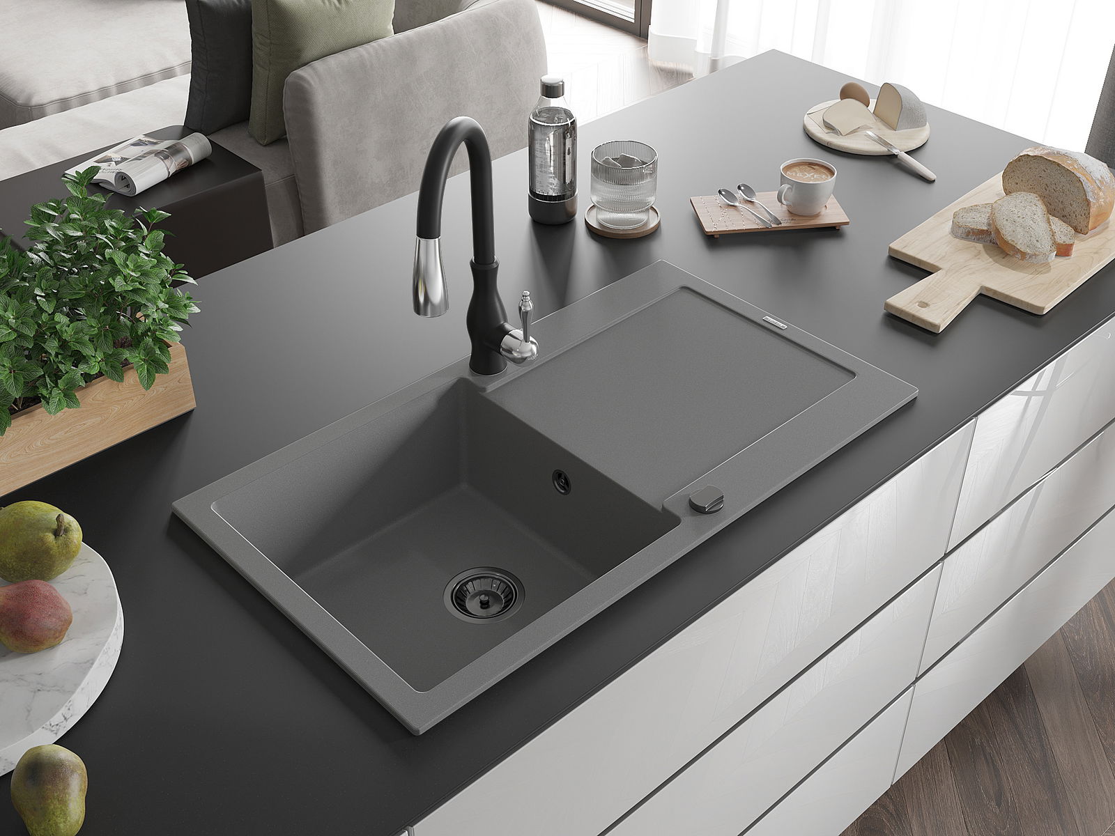 La scelta di un lavello con sgocciolatoio è una soluzione pratica che consente di riporre piatti, verdure e frutta lavati. Lo sgocciolatoio facilita la cucina quotidiana e aiuta a mantenere l'ordine in cucina.