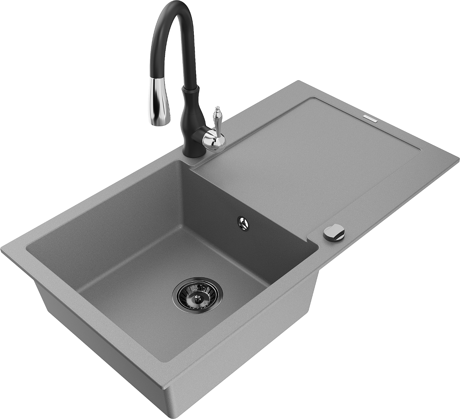 Mexen Leo lavello da cucina in granito 1-vasca con scolapiatti e rubinetto da cucina Savita, grigio - 6501-71-672601-70-B