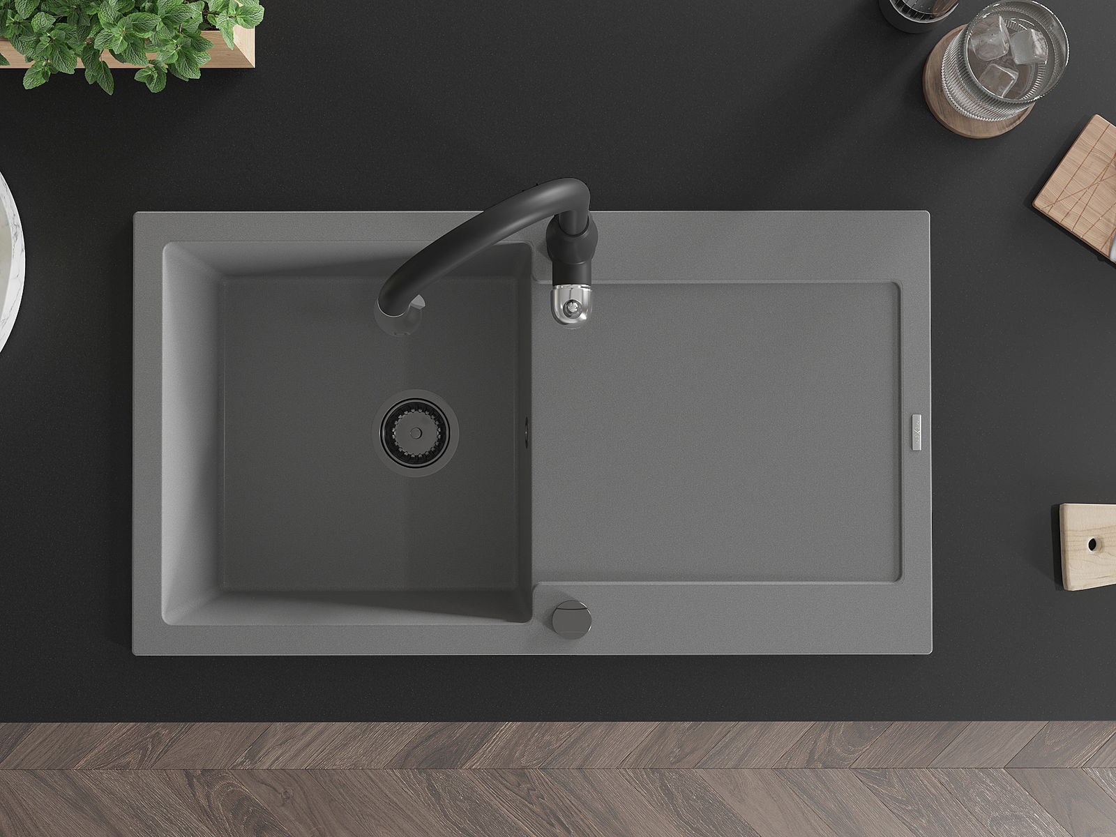 Il lavello è realizzato in granito di alta qualità. Rappresenta un complemento elegante e, soprattutto, pratico per ogni cucina, indipendentemente dal suo stile. L'alta qualità e la durata del granito garantiscono un utilizzo che dura per molti anni.