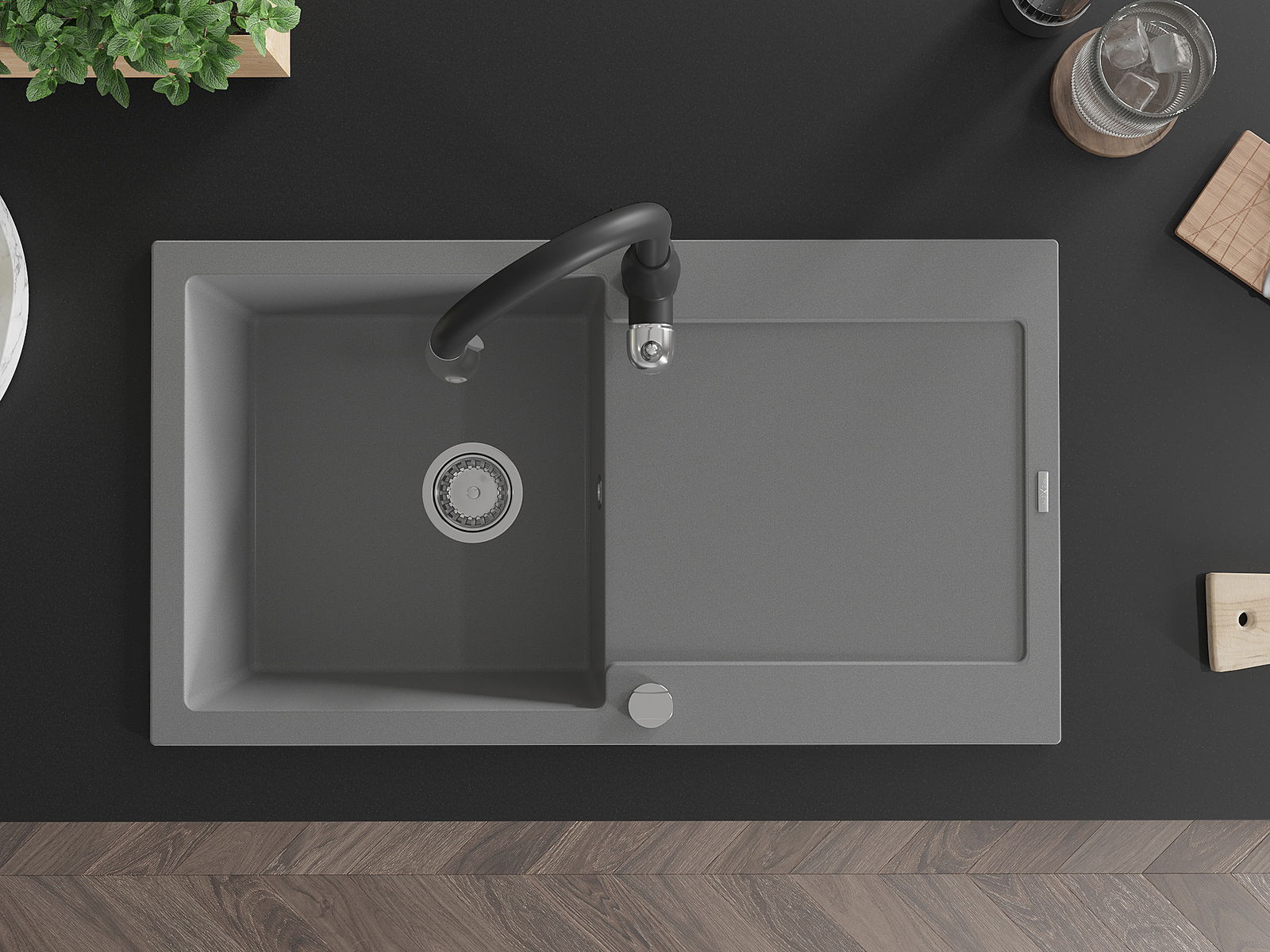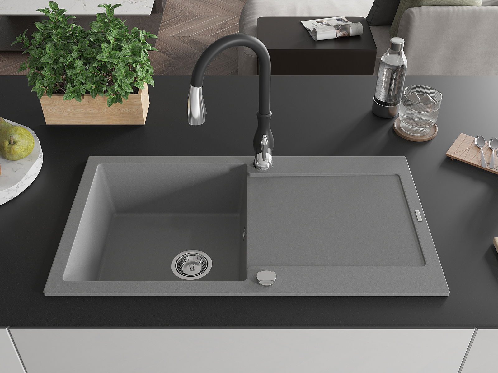 Il lavello è realizzato in granito di alta qualità. Rappresenta un complemento elegante e, soprattutto, pratico per ogni cucina, indipendentemente dal suo stile. L'alta qualità e la durata del granito garantiscono un utilizzo che dura per molti anni.