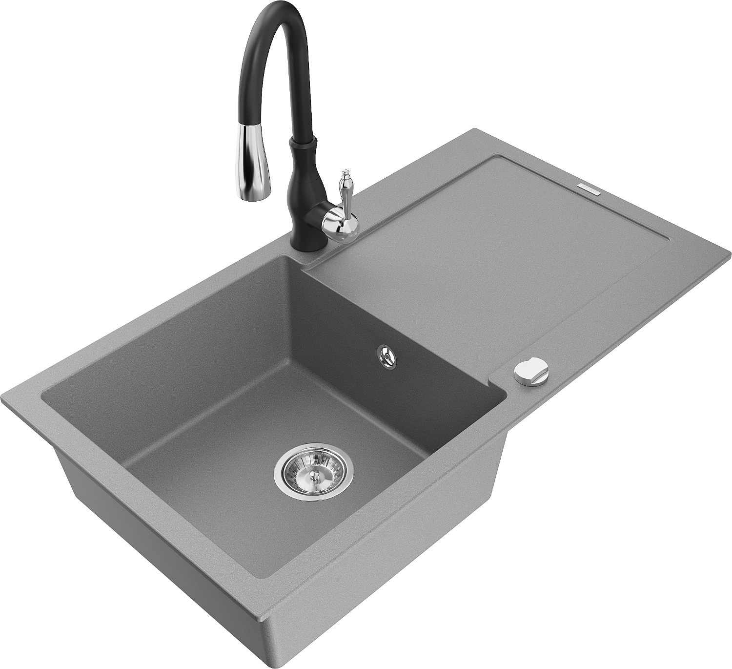 Mexen Leo lavello da cucina in granito 1 vasca con scolapiatti e rubinetto da cucina Savita, grigio - 6501-71-672601-70