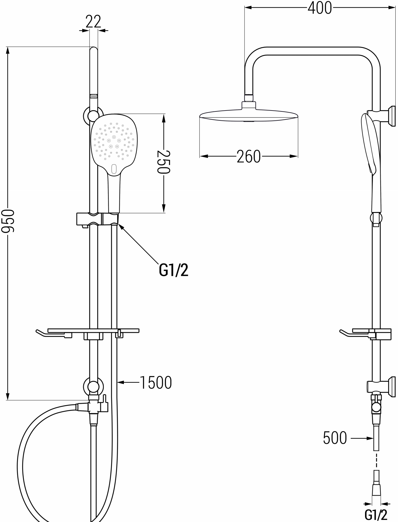 Dimensioni del soffione: 260x230 mm