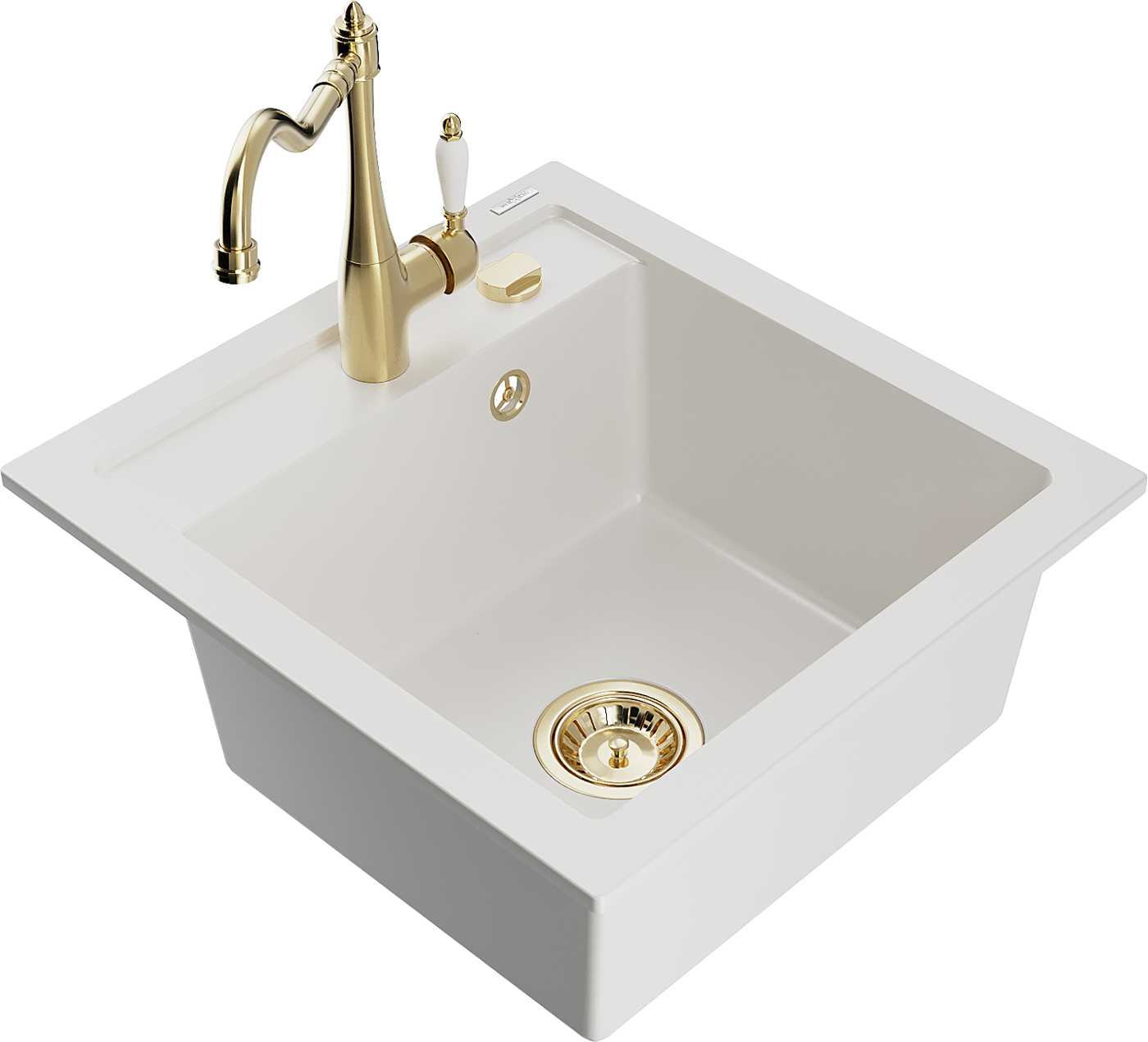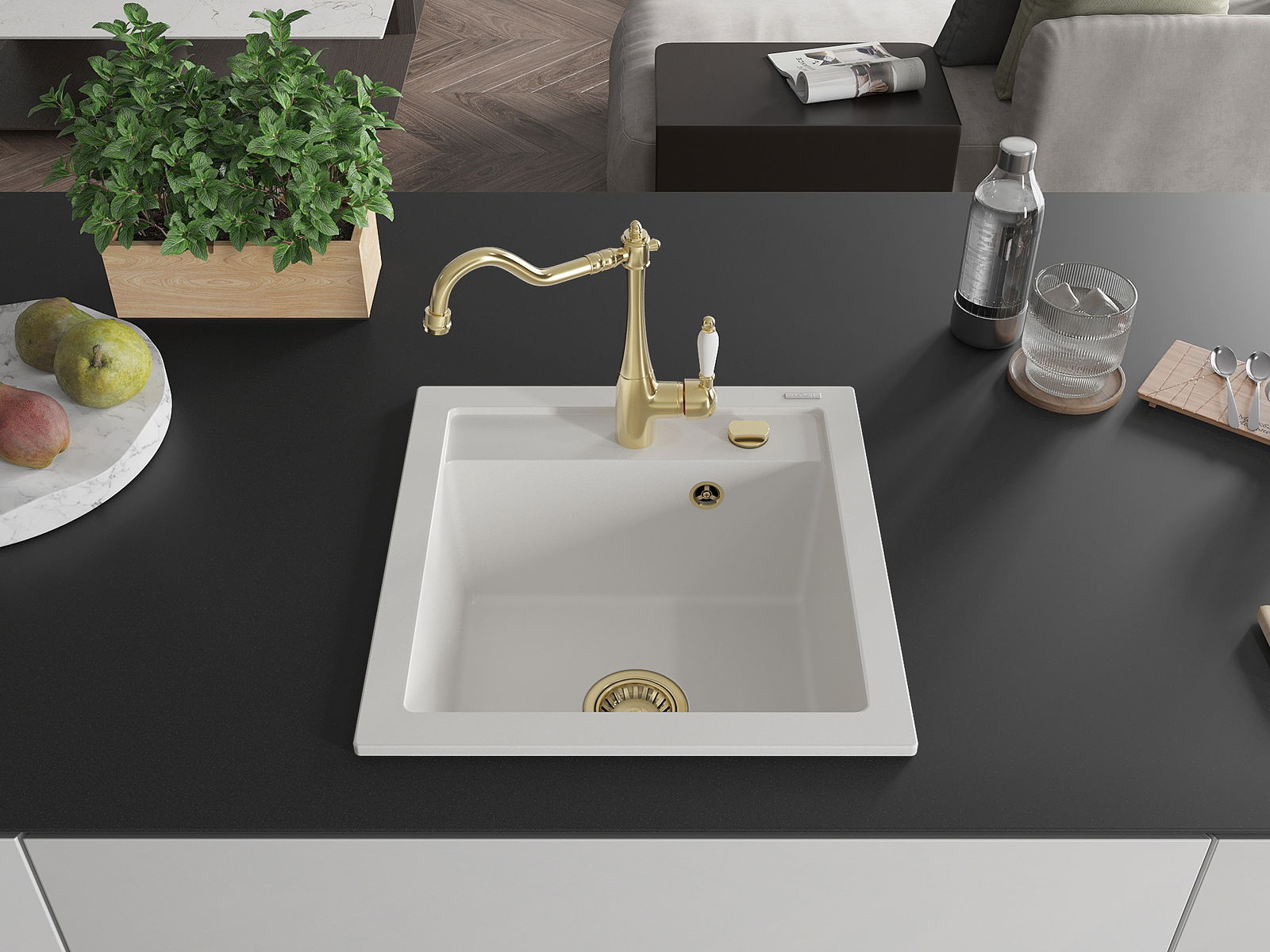 Mexen Vito lavello in granito a 1 vasca con miscelatore da cucina Carla, bianco - 6503-20-670700-50
