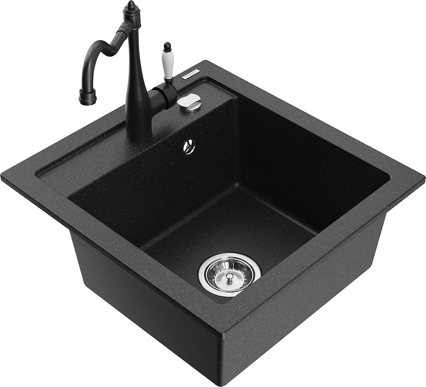 Mexen Vito lavello in granito a 1 vasca con miscelatore da cucina Carla, nero/metallizzato argento - 6503-73-670700-70