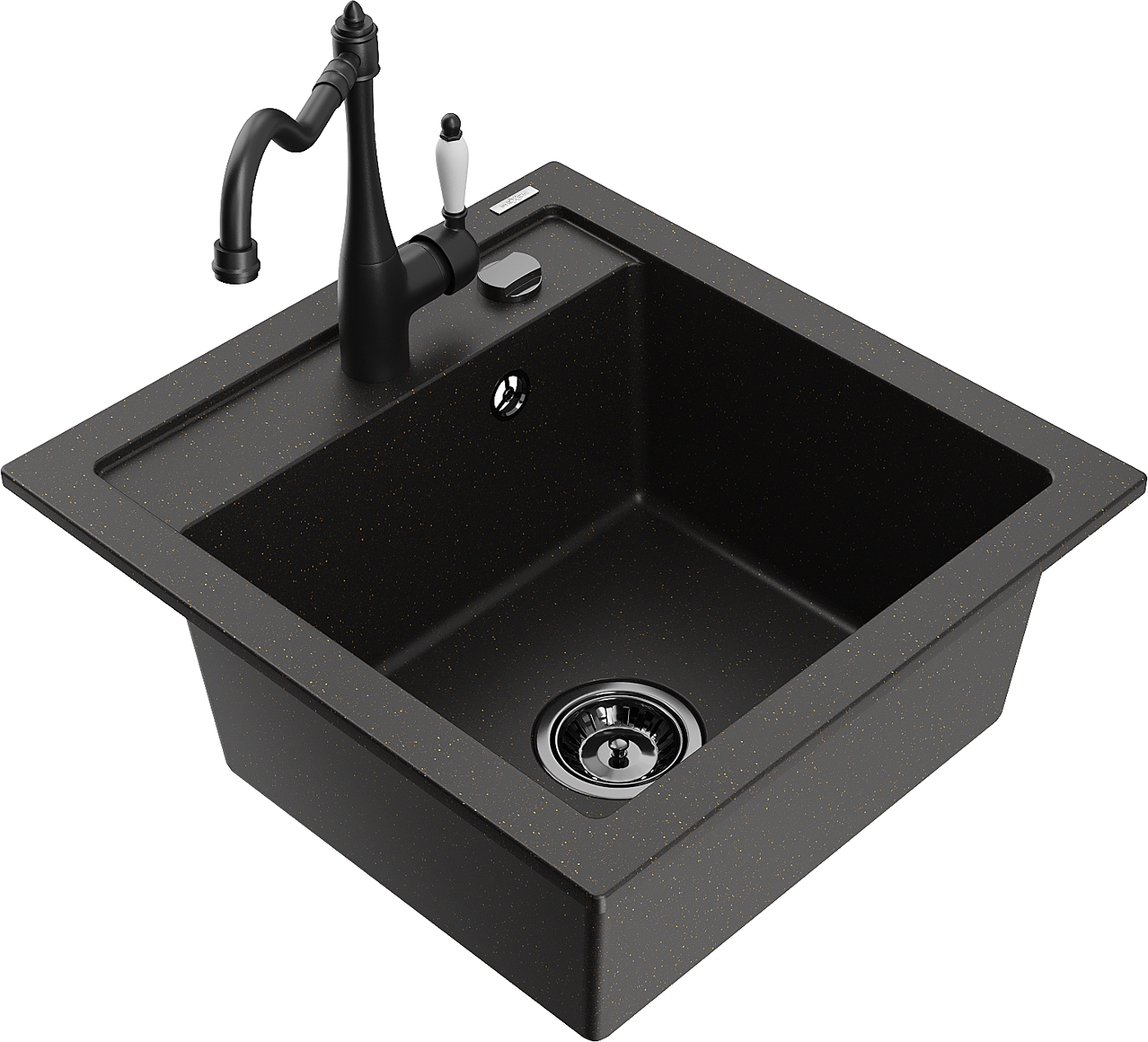 Mexen Vito lavello in granito a 1 vasca con rubinetto da cucina Carla, nero/oro metallizzato - 6503-75-670700-70-B