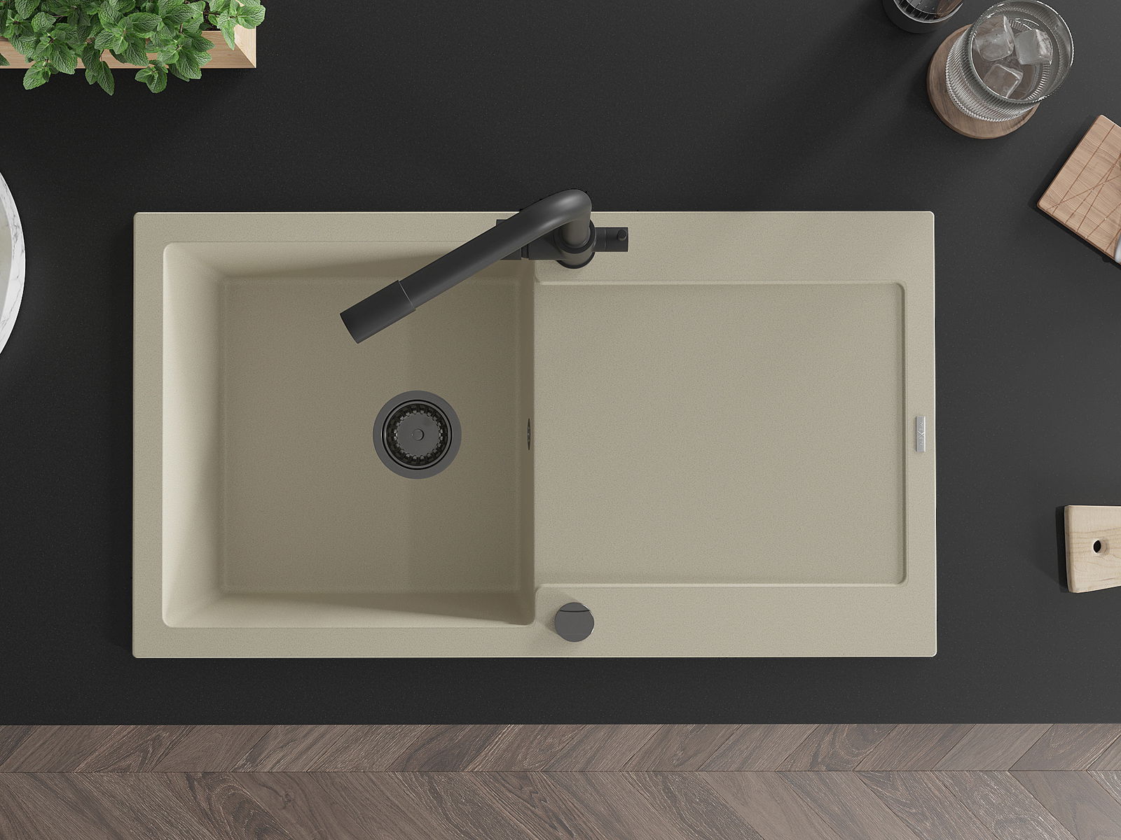 Mexen Leo lavello in granito a 1 vasca con sgocciolatoio e rubinetto da cucina Duero, beige- 6501-69-671600-70