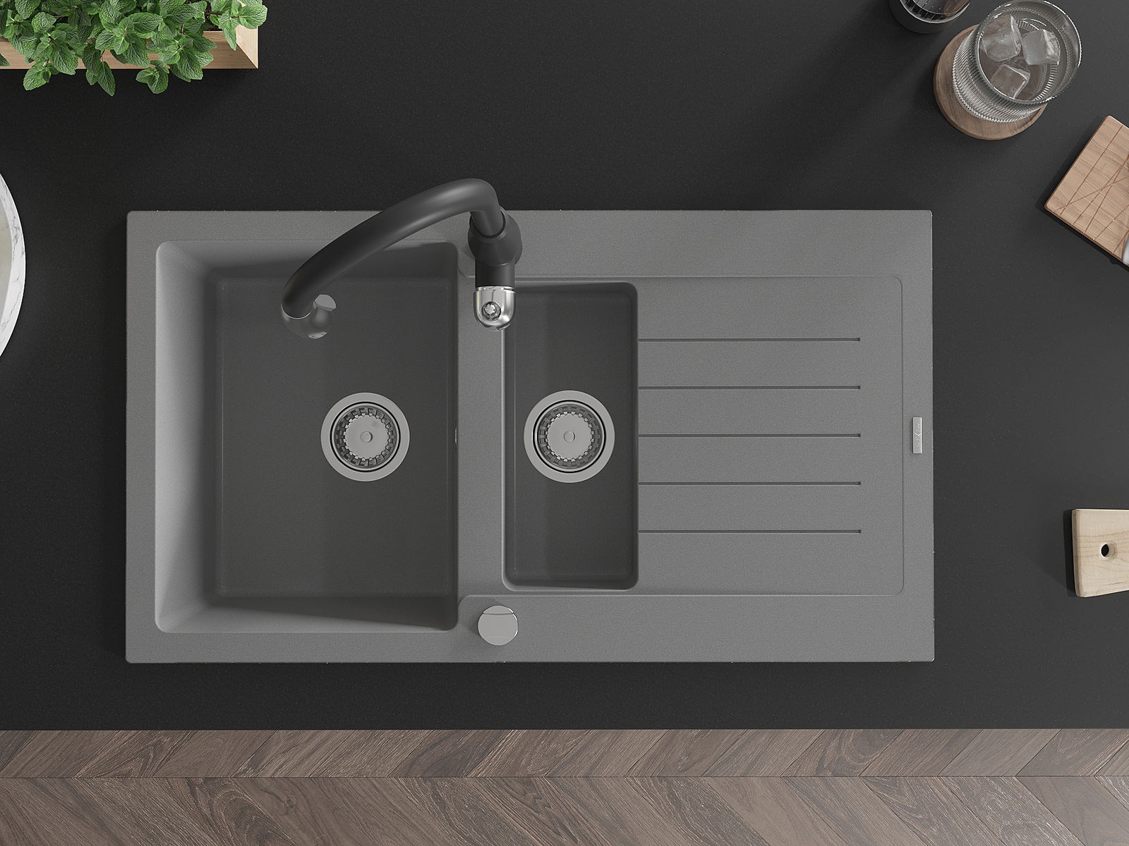 La scelta di un lavello con sgocciolatoio è una soluzione pratica che consente di riporre piatti, verdure e frutta lavati. Lo sgocciolatoio facilita la cucina quotidiana e aiuta a mantenere l'ordine in cucina.