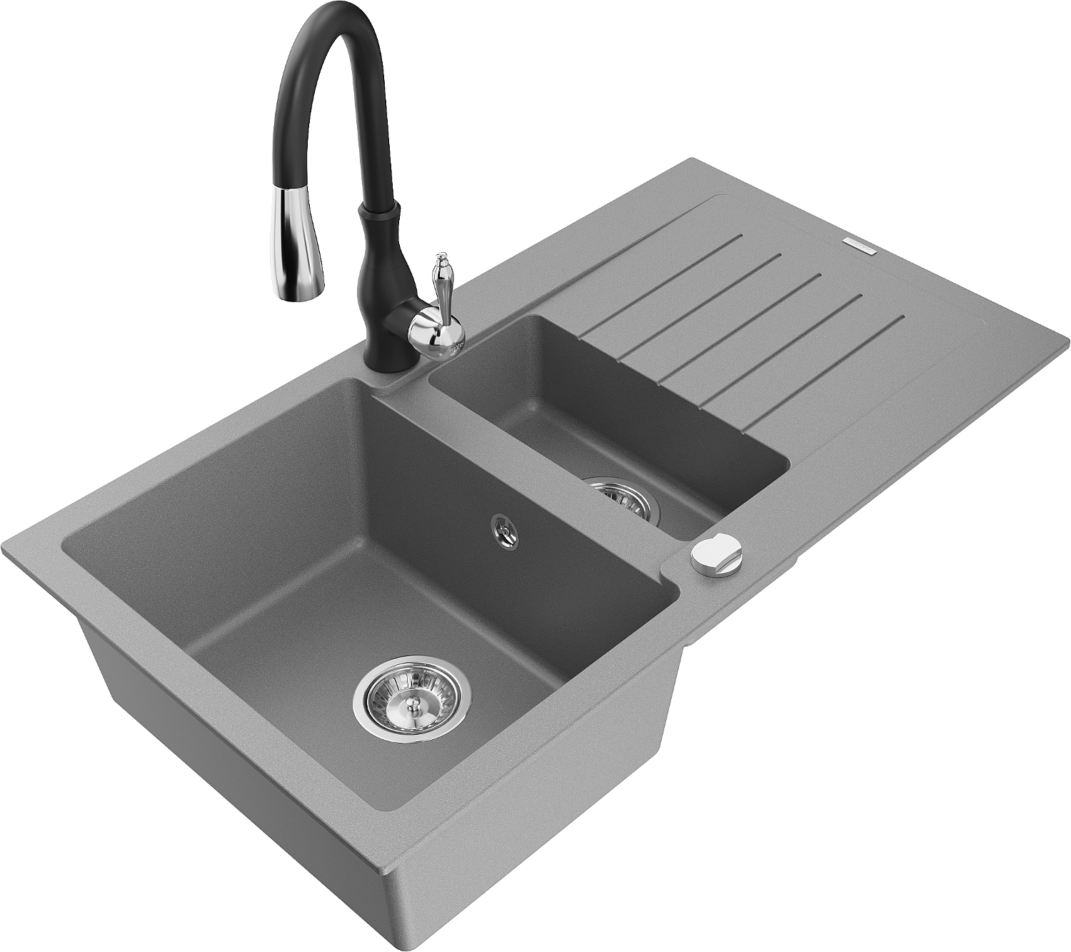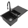 Mexen Matias lavello in granito 1,5 vasche con scolapiatti e rubinetto da cucina Savita, grigio - 6502-71-672601-70