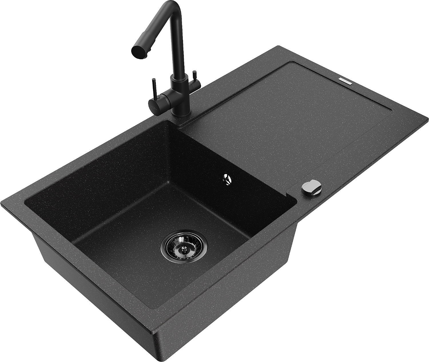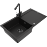 Mexen Leo lavello in granito a 1 vasca con sgocciolatoio e rubinetto da cucina Duero, nero/argento metallizzato
