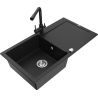 Mexen Leo lavello in granito a 1 vasca con sgocciolatoio e miscelatore cucina Duero, nero/argento metallizzato