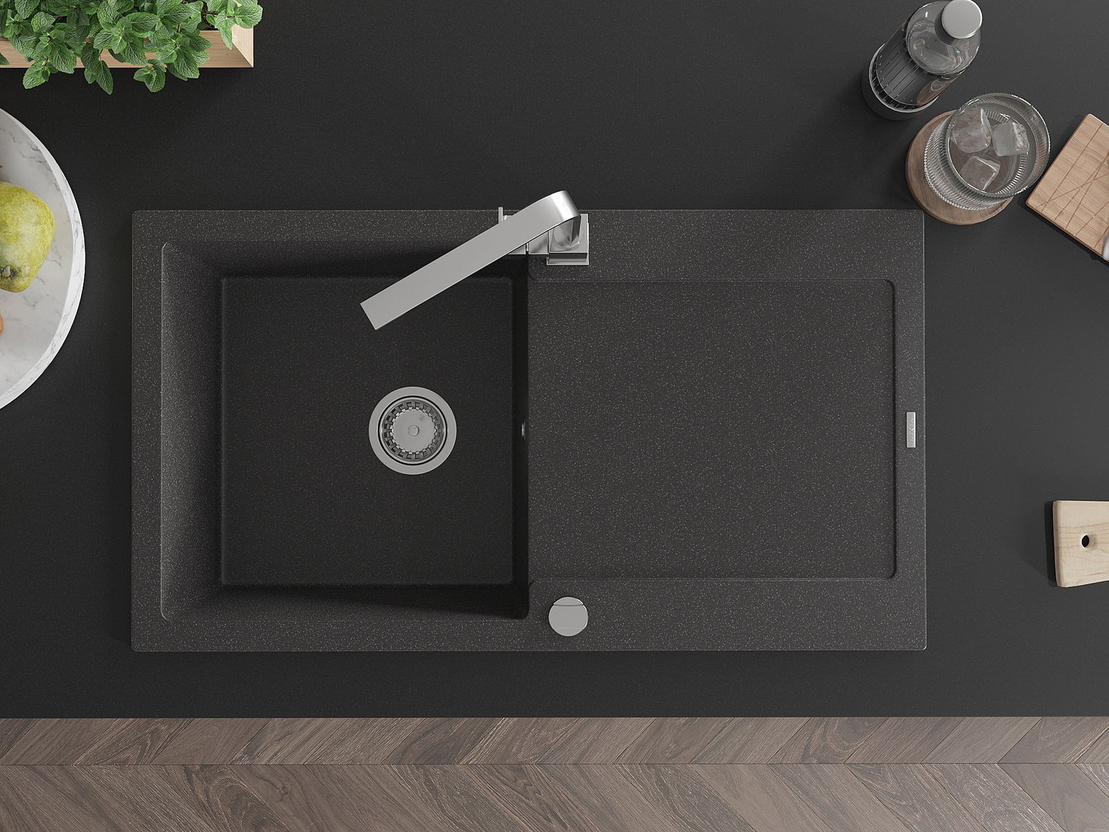 Il lavello è realizzato in granito di alta qualità. Rappresenta un complemento elegante e, soprattutto, pratico per ogni cucina, indipendentemente dal suo stile. L'alta qualità e la durata del granito garantiscono un utilizzo che dura per molti anni.